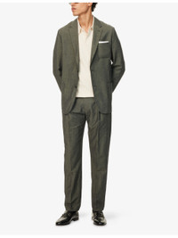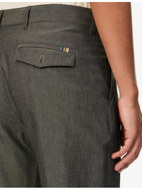 PRODUCT DETAILS - Paul Smith cotton and linen trousers - 50% linen, 50% cotton - Button, hook-and-eye and zip-fly fastening - Slim fit, mid-rise, tapered-leg, structured waistband with belt loops, pressed centre creases and pleats, two angled pockets at front, two pockets at back - Dry clean only - Made in Portugal - Size 30: rise 12.5in / 32cm, inside leg 30in / 76cm, leg opening 14.5in / 36cm - Model is 6ft 2in/1.88m and wears a size UK 30 - Lightweight, non-stretch Ref: R04457751