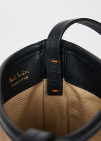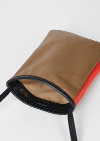 Made in Spain from premium soft leather, this small pouch bag features taupe, navy, and orange panels. Finished with a mag-dot closure, beige twill lining, and embossed Paul Smith signature logo detail. Product Code: M1A-8143X-NPOUCH-73