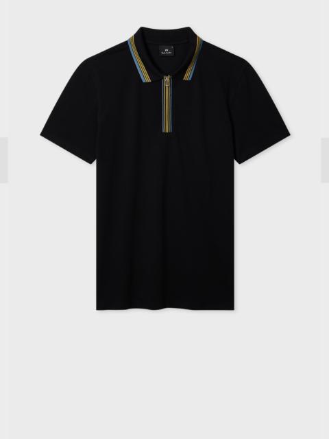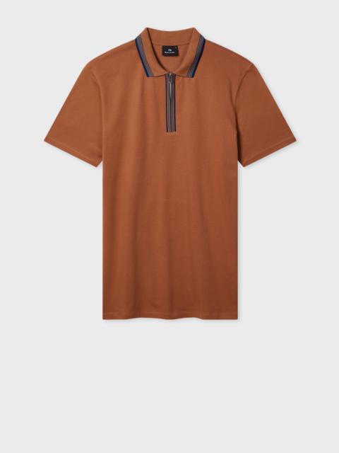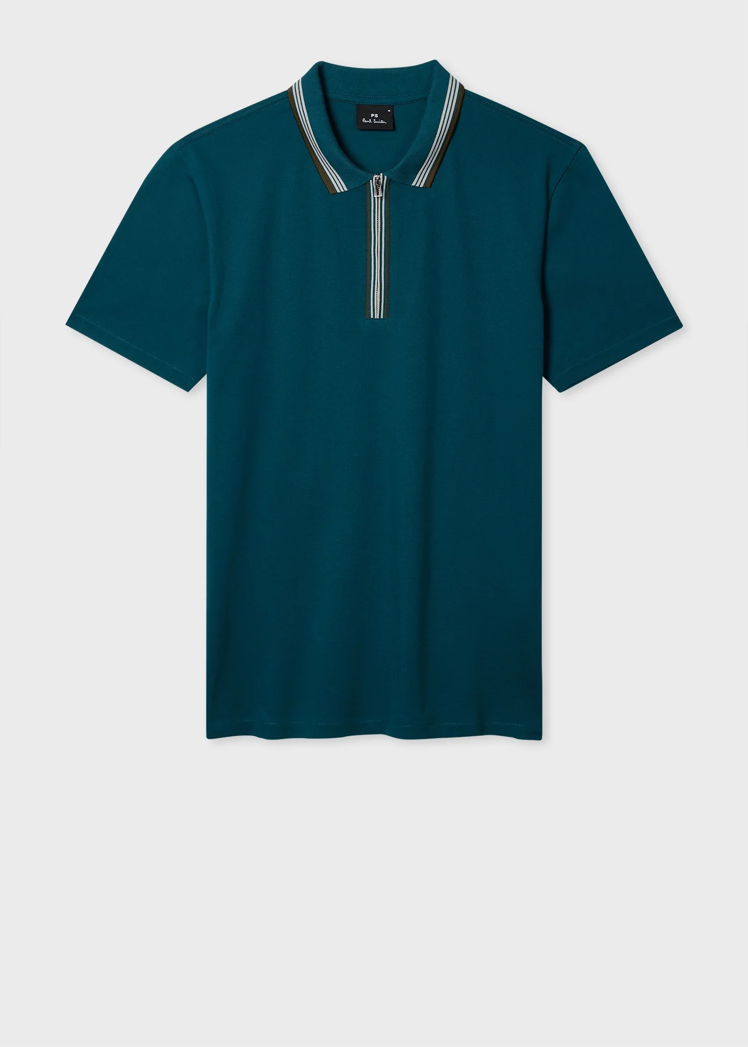Teal Contrast Tipping Zip-Neck Polo Shirt