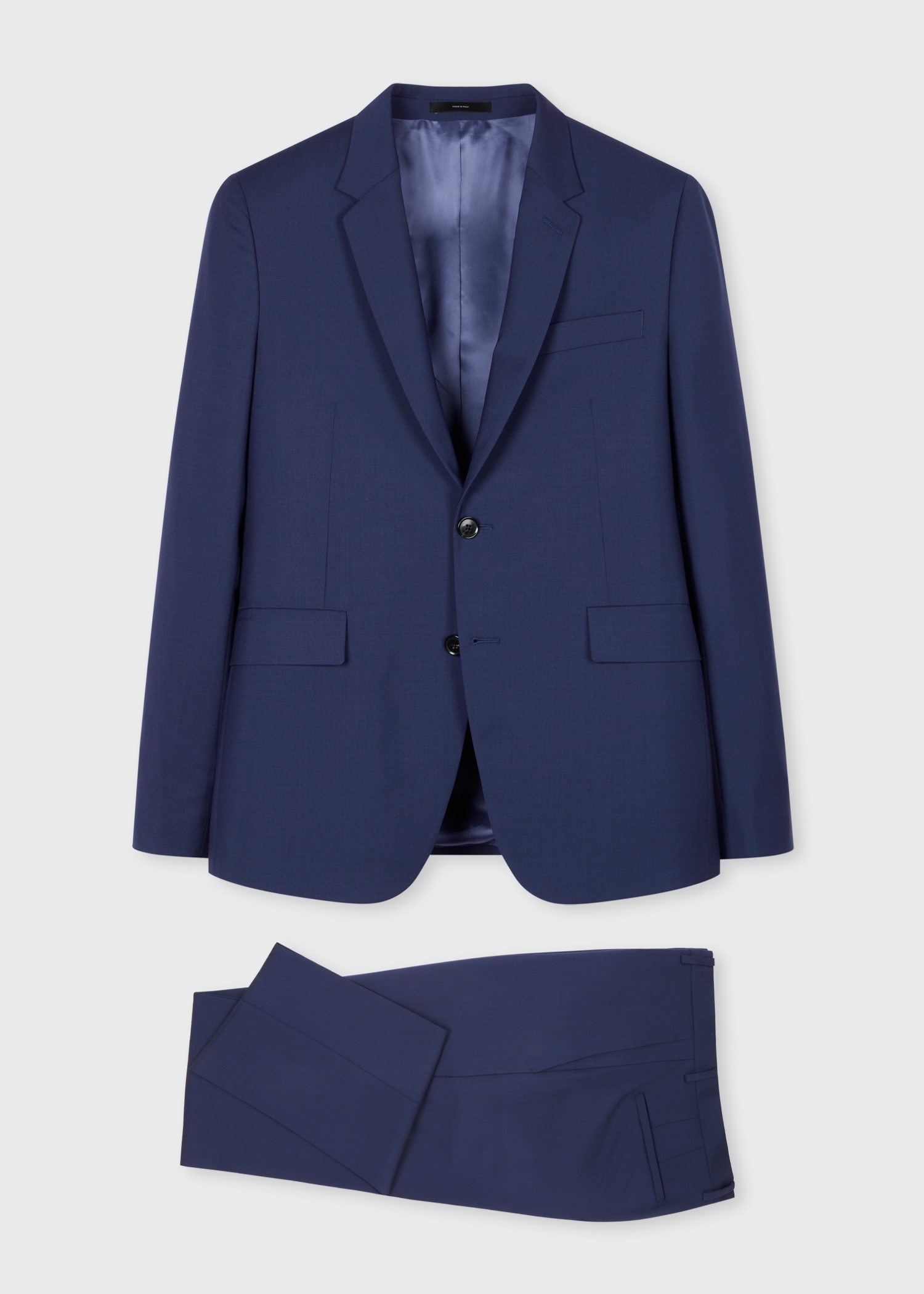 Made in Italy from a premium wool and mohair-blend for airiness and crease resistance, this vibrant blue suit is cut in our slim Kensington shape. Complete with matching slim trousers, this suit is finished with a soft cupro lining. * Slim notched lapel with Melton under-collar * Flap pockets with contrast lining * Tonal cupro lining for added comfort * Kissing button cuffs * Unfinished hems, ready for custom tailoring * Internal rubber grip on the waistband * 84% Wool, 16% Mohair * Dry clean only * Made in Italy The Size Sizes 36 - 42: There is a 6";; drop from the chest to the waist measurement Size: 44 - 48: There is a 7";; drop from the chest to the waist measurement The Fit The Kensington jacket is slightly longer through the front with a slight cutaway for flattering definition. The blazer has suppression and shaping through the waist with slimmer lapels, giving the appearance of a more elongated torso. Finished with sharp shoulder padding and a classic shoulder roll. The trousers feature a low-rise fit and are slim and tapered through the thigh, knee and calf. Complete with a narrow hem for a neat break. Product Code: M1R-1250-G00002-48C