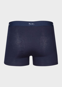 Crafted from a soft organic cotton-blend, this pack of three low-rise boxer briefs feature a plain navy design with tonal Paul Smith signature waistband. Updated for Autumm/Winter 2023, our best-selling boxer packs are now made using an organic cotton. 95% Organic Cotton, 5% Elastane Machine washable The Size Sizing guide (to fit waist) S - 30-32"; / 76-81cm M - 32-34"; / 81-86cm L - 34-36"; / 86-91cm XL - 36-38"; / 91-97cm XXL - 38-40"; / 97-103cm Product Code: M1A-914-M3PK-47