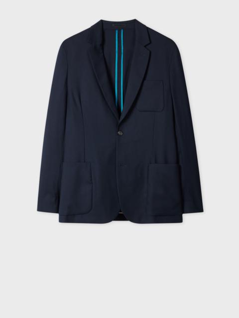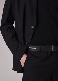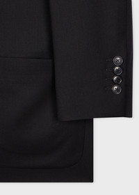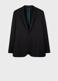 Made in Portugal as part of the 'Suit To Travel In' collection, this black blazer is constructed using a high-twist 100% worsted wool yarn to create a quick recovery, crease-resistant cloth - offering a versatile and highly-practical piece of tailoring. * Water repellent * Natural stretch * Crease recovery * Unconstructed, relaxed shoulder * Bluff stitched patch pockets * Two-button closure * Contrast internal binding * Full sleeve lining * 100% Wool * Dry clean only * Made in Portugal The Fit Classic-Fit also known as Casual-Fit is unstructured with a relaxed shoulder and slightly longer in the body. Product Code: M1R-2321-N00001-79