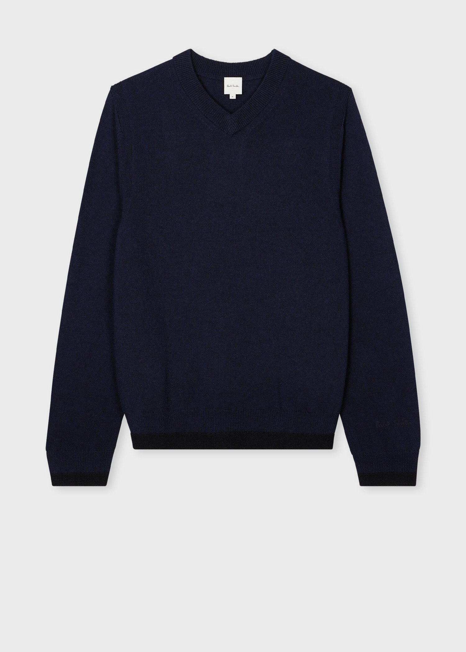 Made from 100% soft merino wool, this navy blue v neck sweater is a versatile styling piece for the changing weather. Complete with a ribbed neckline, cuffs and waistband, this sweater can be taken from day-to-evening with the addition of jeans or trainers. 100% Merino Wool Hand Wash Only The Fit - Regular-fit is relaxed through the body. Product Code: M1R-908Y-N02499-49