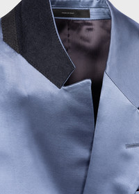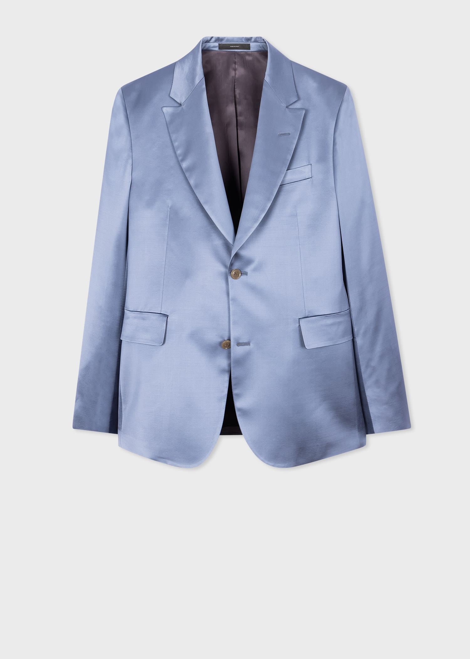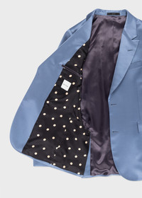 Made in Italy from a viscose and wool-blend satin cloth, this dusty blue blazer features a two button fastening and peak lapel. Complete with a polka dot panelled lining for added comfort, this statement blazer is finished with flap pockets. 54% Viscose, 46% Wool Dry clean only Made in Italy Product Code: M1R-2309P-M02218-40