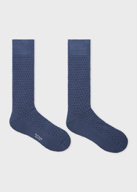 Made in Italy from a soft cotton-blend, these washed navy socks feature a polka dot pattern throughout. Product Code: M1A-800MO-T684-47