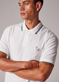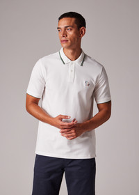 Made from organic cotton pique with stretch for added comfort, this white polo shirt features our 'Broad Stripe Zebra' embroidered on the chest. Cut for a regular-fit, this polo is finished with dark green tipping on the collar and cuffs. The Fit - Regular-Fit is relaxed through the body. Product Code: M2R-151LE-T21511-02A