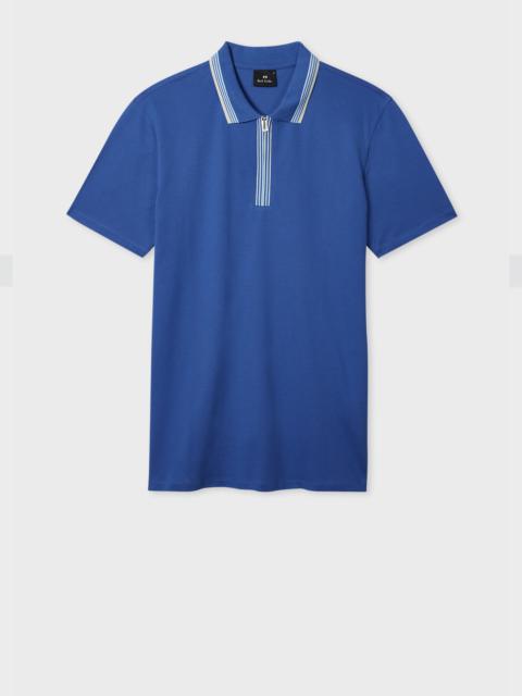 White Contrast Tipping Zip-Neck Polo Shirt