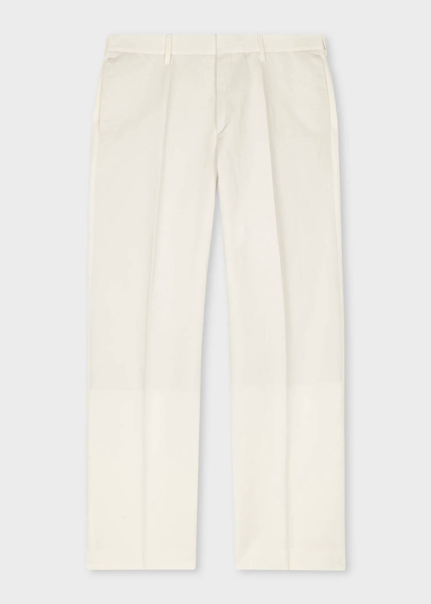Made in Portugal from a cotton and linen-blend twill, these white trousers feature a subtle slub finish throughout. Cut for a looser shape, these trousers are finished with an internal rubber grip on the waistband, to help keep shirting secure when tucked in. 58% Cotton, 42% Linen Dry clean only Made in Portugal The Fit Straight-Fit Product Code: M1R-410Z-P02331-02