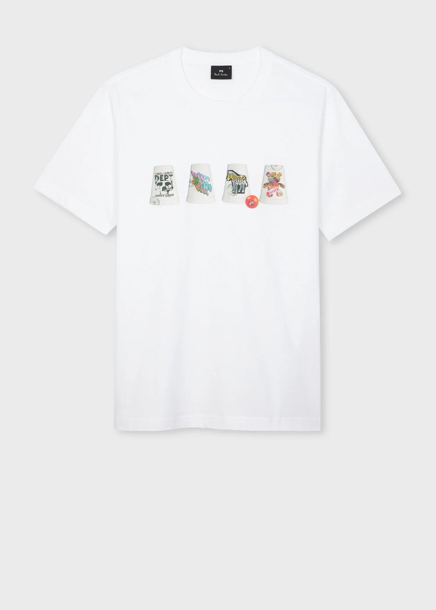 Made from 100% organically grown cotton, this white T-shirt features a cup line-up print - each with a seasonal print on. Cut for a regular-fit, this T-shirt is finished with a classic ribbed crew neck. 100% Organically Grown Cotton Machine washable The Fit Regular-Fit is relaxed through the body. Product Code: M2R-011R-TP5257-01
