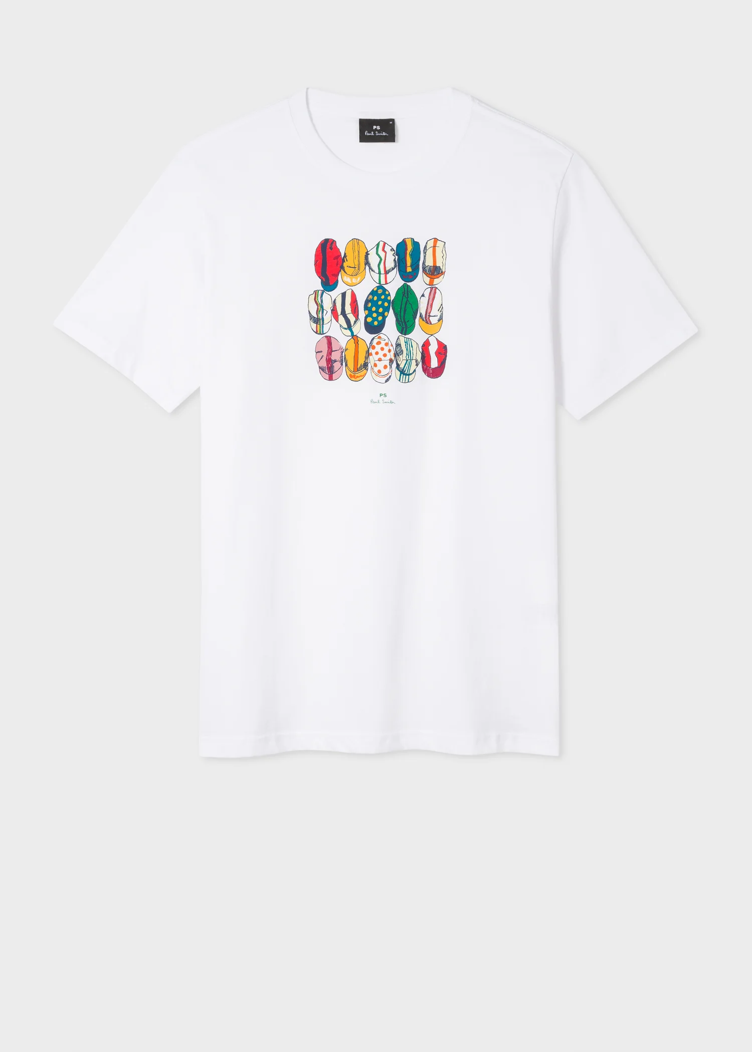 Constructed from soft 100% organically grown cotton and cut for a regular-fit, this classic crew neck style features an illustrated 'Cycling Caps' print on the front. Finished with a PS Paul Smith printed logo in the centre. Knitted, 100% Organically Grown Cotton Machine Washable The Size Model wears a size M Model measures: Height 6’’ / 183cm The Fit Regular-Fit is relaxed through the body. Product Code: M2R-011R-AP8921-01