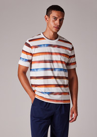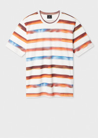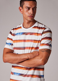 Made from organically grown cotton, this white crew neck T-shirt features a vibrant digital stripe print. Cut for a regular-fit, this T-shirt is finished with a stitched on ribbed collar. The Fit - Regular-Fit is relaxed through the body. Product Code: M2R-220X-T22465-01