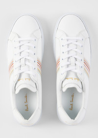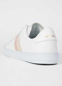 Made in Portugal from premium leather uppers, these white 'Hansen' trainers feature our classic 'Signature Stripe' on the side for an added flash of colour. Finished with tonal rubber cupsoles and foil-embossed logos at the heel and tongue. 100% Leather Uppers 100% Rubber Soles Made in Portugal Product Code: M1S-HAN77-MMOLV-01