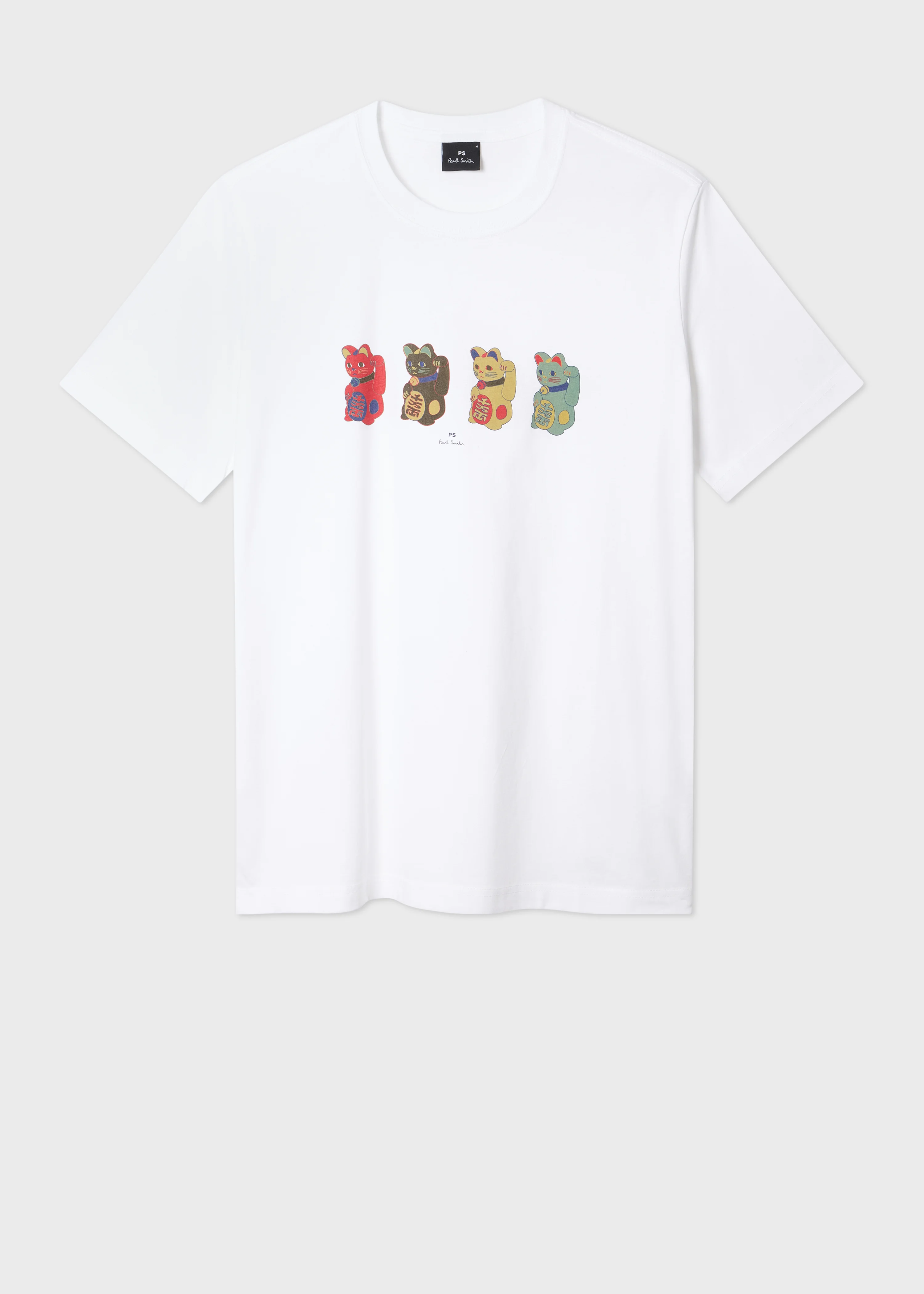 Made from 100% organically grown cotton, this white crew neck T-shirt features a playful 'Lucky Cats' line up print. Cut for a regular-fit, this T-shirt is finished with a ribbed collar. The Fit - Regular-Fit Product Code: M2R-011R-VP5717-01