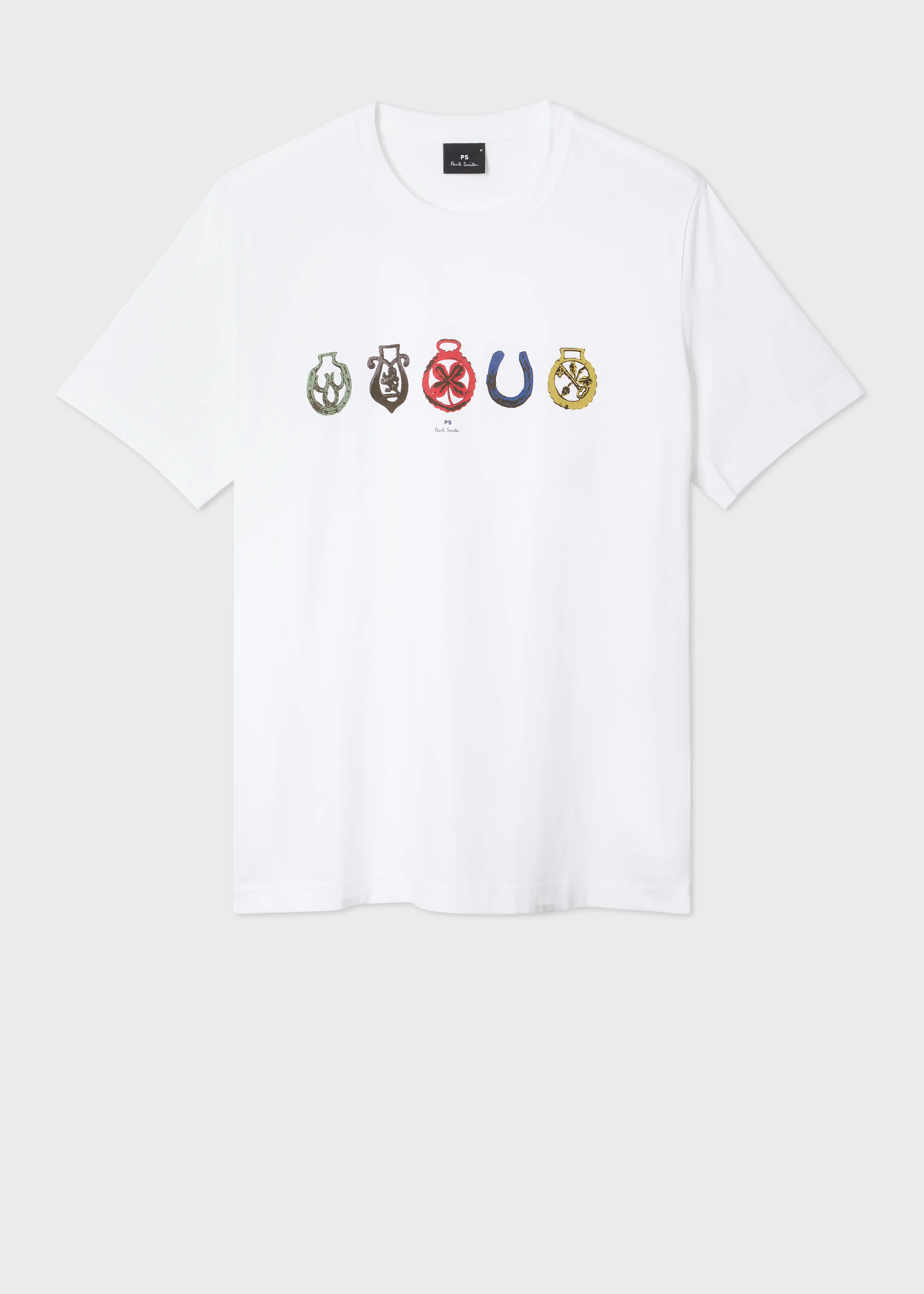 Made from organically grown cotton for a soft finish, this white crew neck T-shirt features a seasonal 'Lucky Charms' print. Cut for a regular-fit, this T-shirt is finished with a ribbed collar. The Fit - Regular-Fit Product Code: M2R-011R-VP5716-01