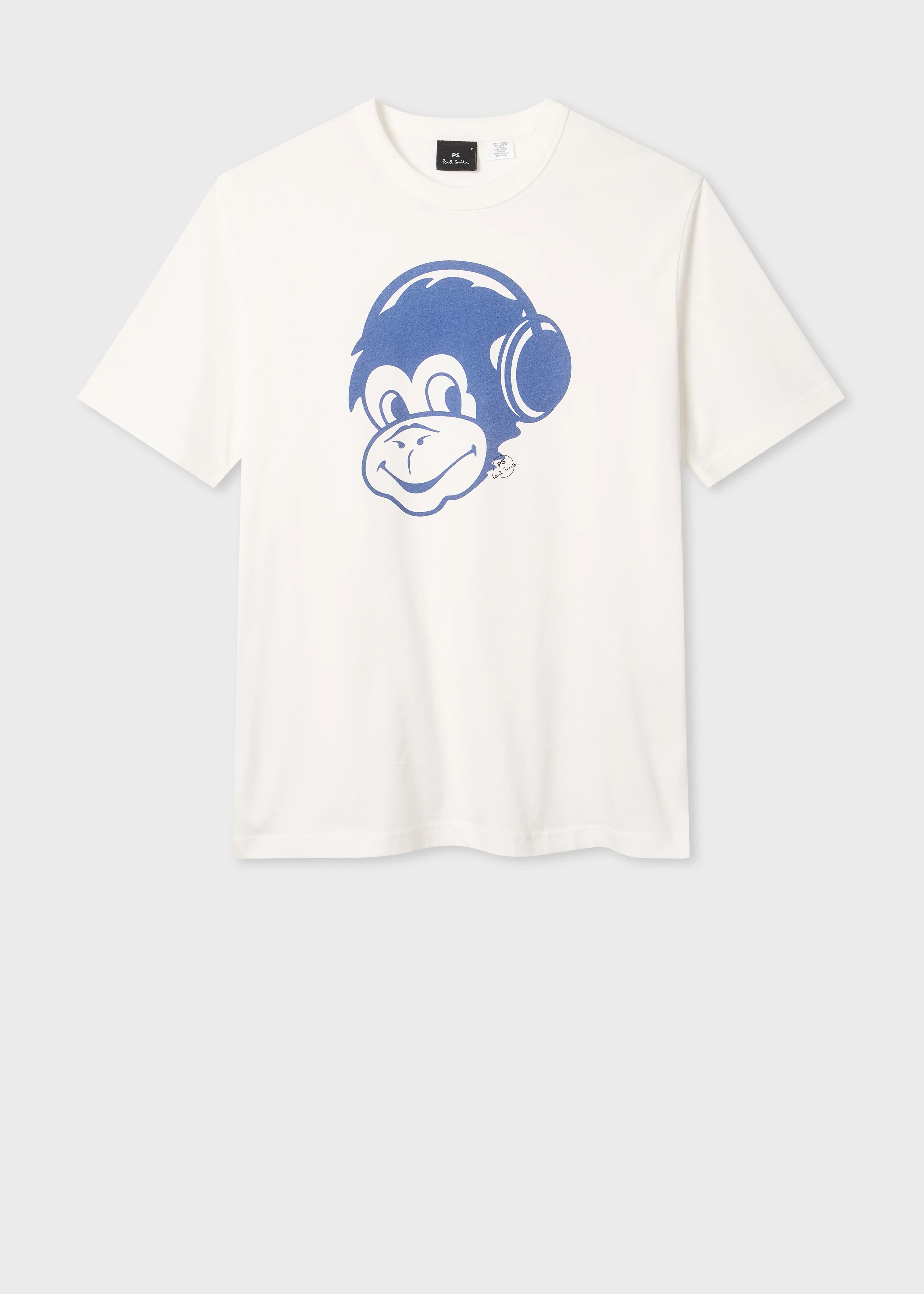 Made from organic cotton for a soft finish, this white crew neck T-shirt features a 'Monkey Headphones' print. Cut for a regular-fit, this T-shirt is finished with a stitched-on ribbed collar. The Fit - Regular-Fit is relaxed through the body. Product Code: M2R-220X-VP5611-02