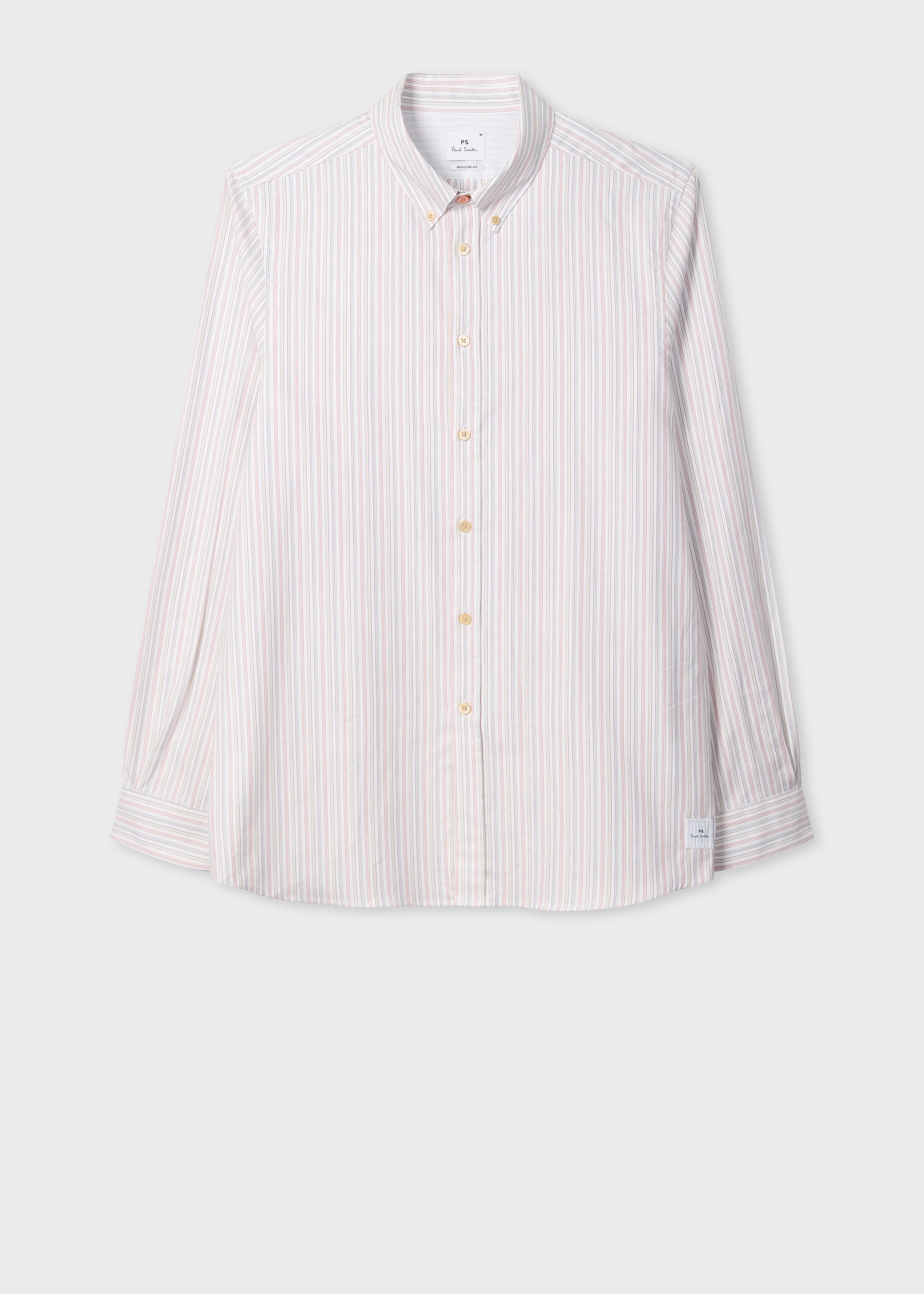 Made from organic cotton Oxford cloth for a soft and lightweight finish, this long-sleeve shirt features a white base with a multicolour stripe pattern throughout. Cut for a regular-fit, this shirt is finished with a button down collar, rear box pleat and subtly contrasting cuff and yoke lining The Fit - Regular-Fit Product Code: M2R-708U-V22555-92