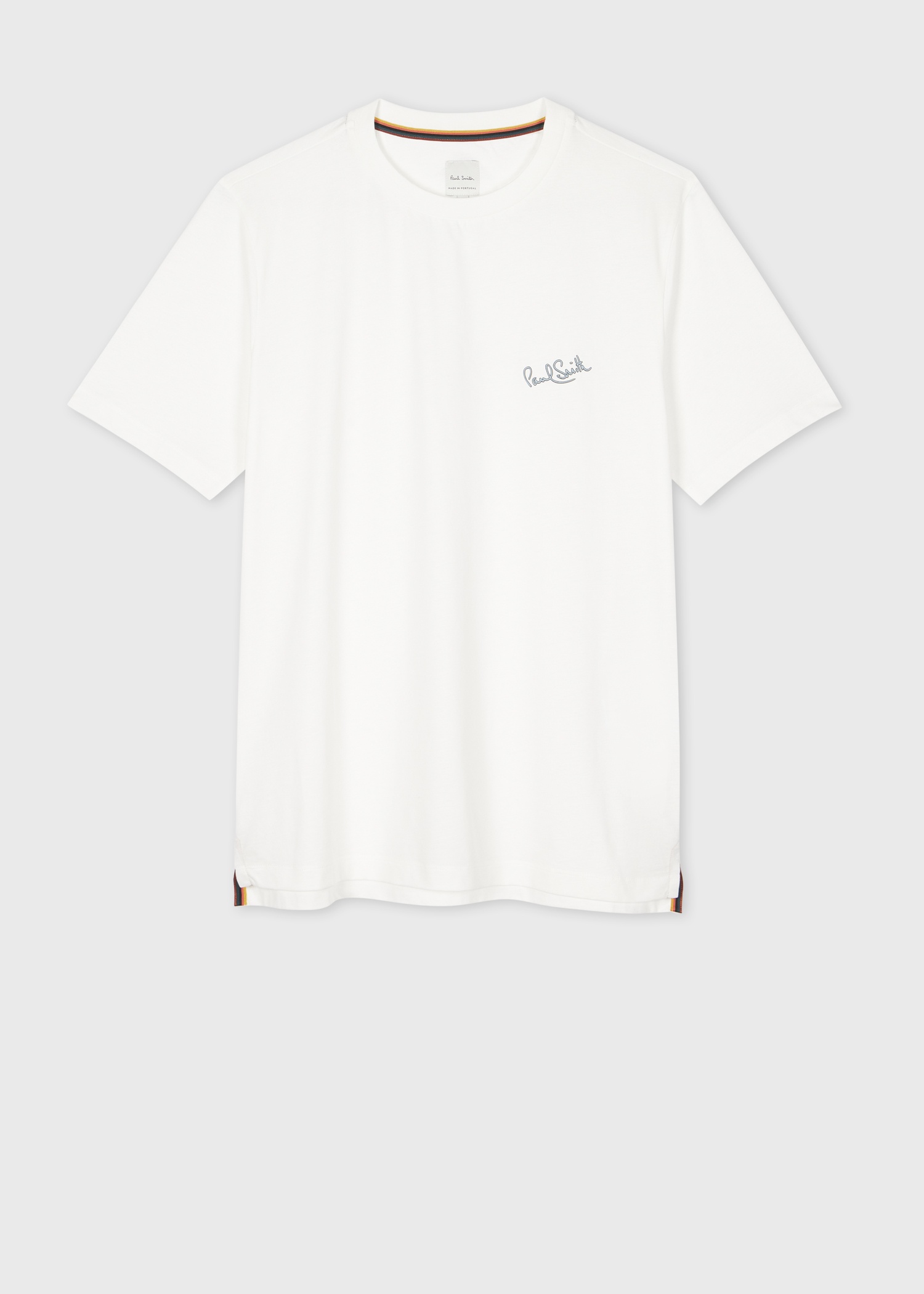 Made in Portugal from 100% organically grown cotton, this white crew neck T-shirt features our signature logo in blue on the chest. Cut for a regular-fit, this versatile T-shirt is finished with a logo at the back below the collar and 'Artist Stripe' internal trim. 100% Organically Grown Cotton Machine washable Made in Portugal The Fit Regular-Fit is relaxed through the body. Product Code: M1R-697P-PP4890-01