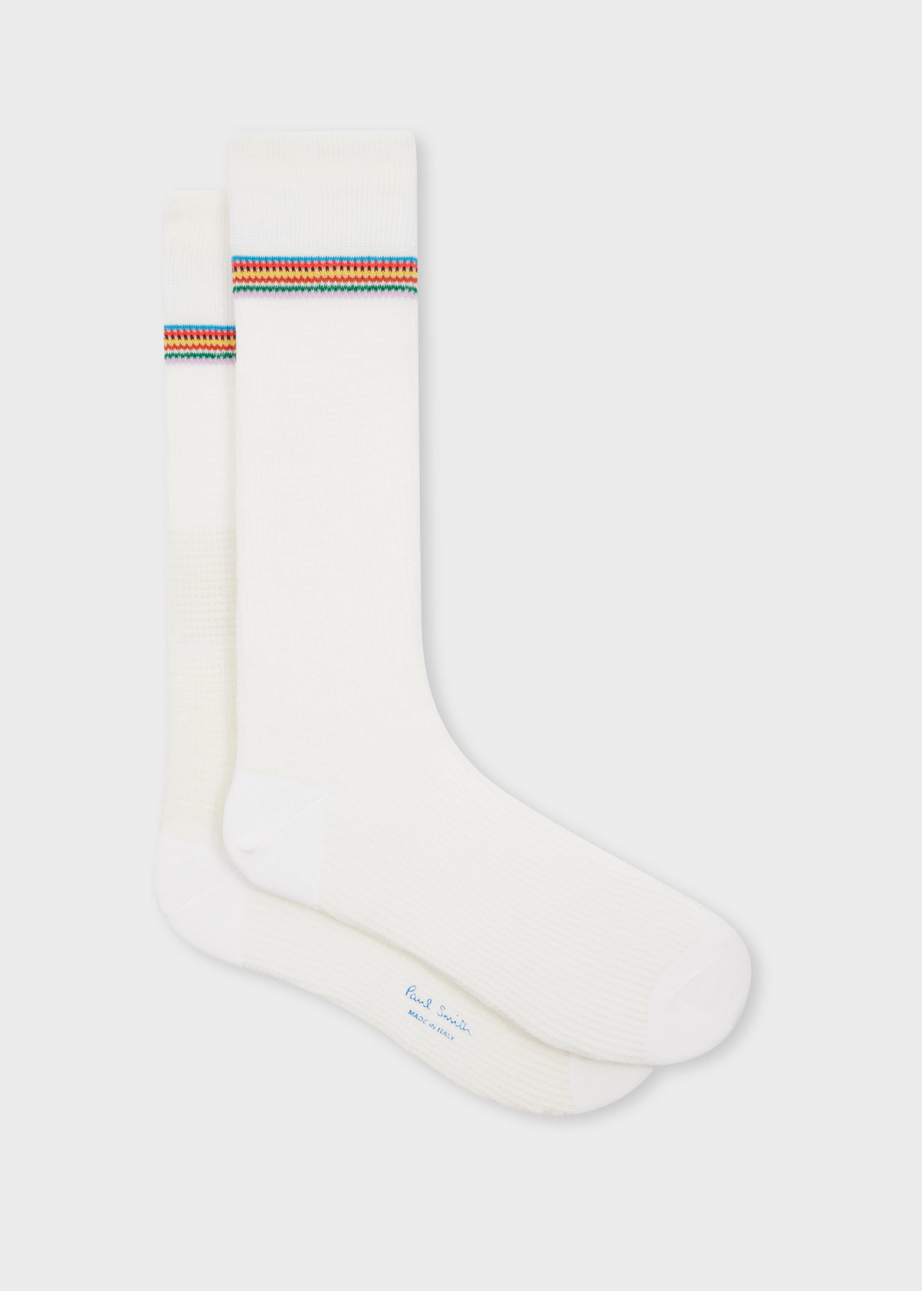 Made in Italy from a soft cotton-blend, these white socks feature our 'Signature Stripe' as trim. Product Code: M1A-800MO-T607-02
