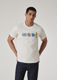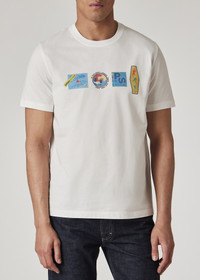 Made from 100% organic cotton for a soft finish, this white T-shirt features a seasonal stickers line up print. Cut for a regular-fit, this T-shirt is finished with a ribbed crew neck. 100% Organic Cotton Machine washable The Fit Regular-Fit is relaxed through the body. Product Code: M2R-011R-TP5259-01