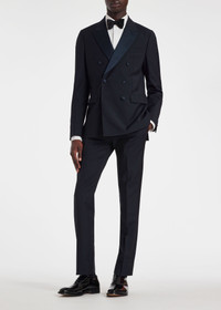Made in Italy from a premium wool and mohair blend, these classic navy trousers are cut for a slim-fit. Ideal for pairing with tailoring, these trousers are complete with contrasting taping on the sides. 84% Wool, 16% Wool Made in Italy Dry clean only Product Code: M1R-935T-K00002-49