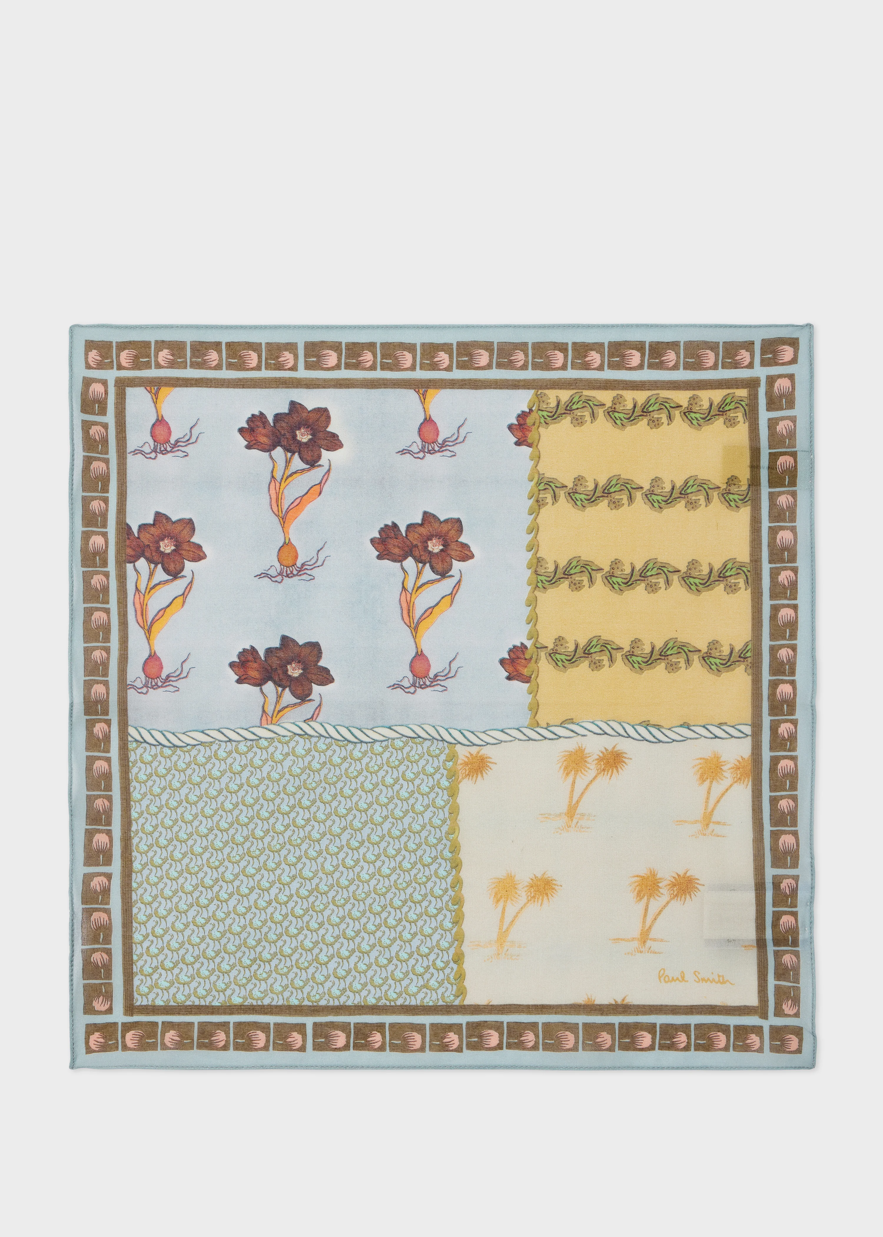 Made in Italy from a pure cotton construction, this unique pocket square features a yellow and blue mixed floral print design. Complete with a tonal border and Paul Smith signature logo. Product Code: M1A-160B-U905-40