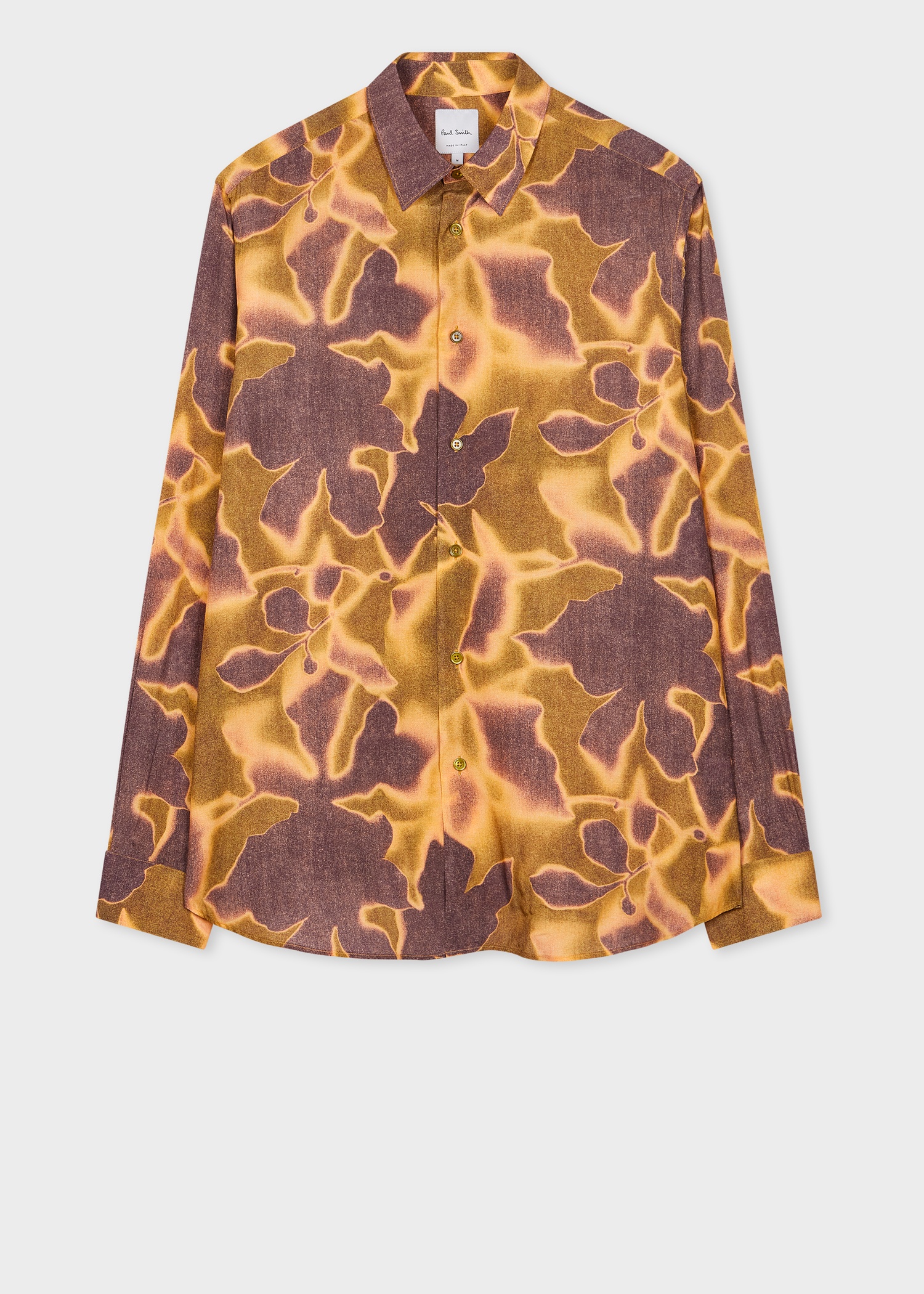 Made in Italy from a rich viscose composition this long-sleeve shirt features the seasonal 'Photogram Leaves' print. Cut to a regular fit, this shirt is finished with a point collar and slightly contrasting green buttons. 100% Viscose Delicate Dry Clean Only Made in Italy The Fit Regular-Fit is relaxed through the body. Product Code: M1R-901U-N02490-10