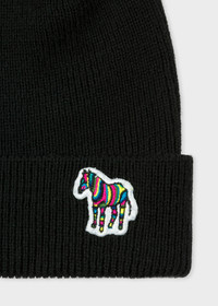 Black 'Zebra' Logo Ribbed Lambswool Beanie Hat