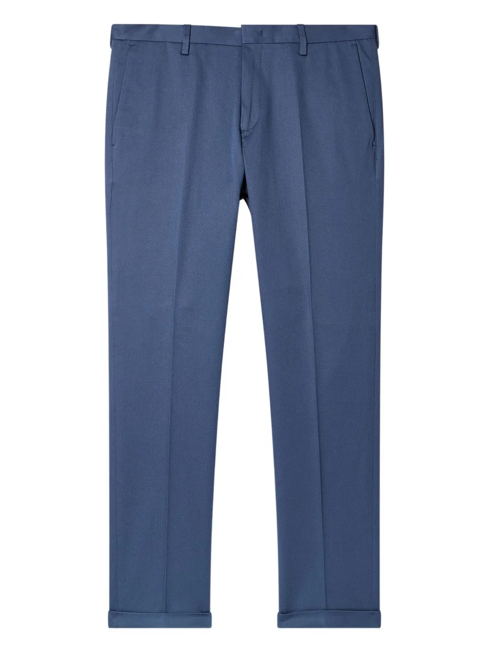 zip-fly cuffed trousers Highlights - Steel blue - Organic cotton - Zip fly - Cuffed hems - Welt pockets - Multicoloured striped tab Imported SIZE & FIT FittingInformation Designed for a slim fit, offering a comfortable fit that sits just away from the leg Made from a midweight stretch fabric, this piece offers elasticity and flexibility when worn Washing instructions Read Manufacturer Guidelines
