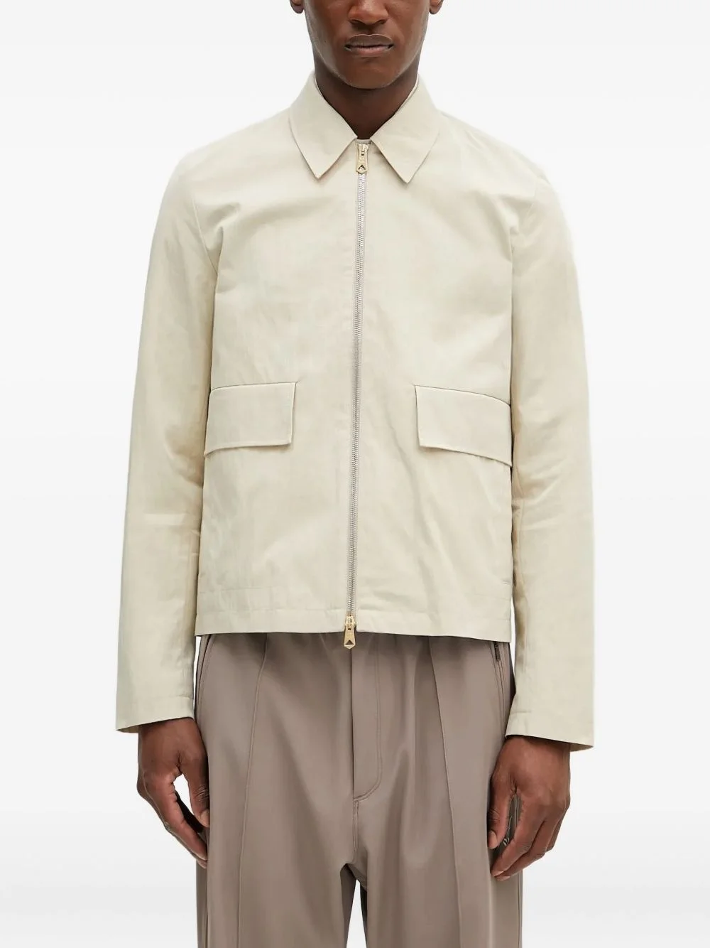 zip-front pocket jacket Highlights - Off-white - Zip fastening - Two flap pockets - Long sleeves - Straight hemline Made in Italy Composition Outer: Cotton 66%, Polyamide 34% Lining: Viscose 100% Washing instructions Read Manufacturer Guidelines