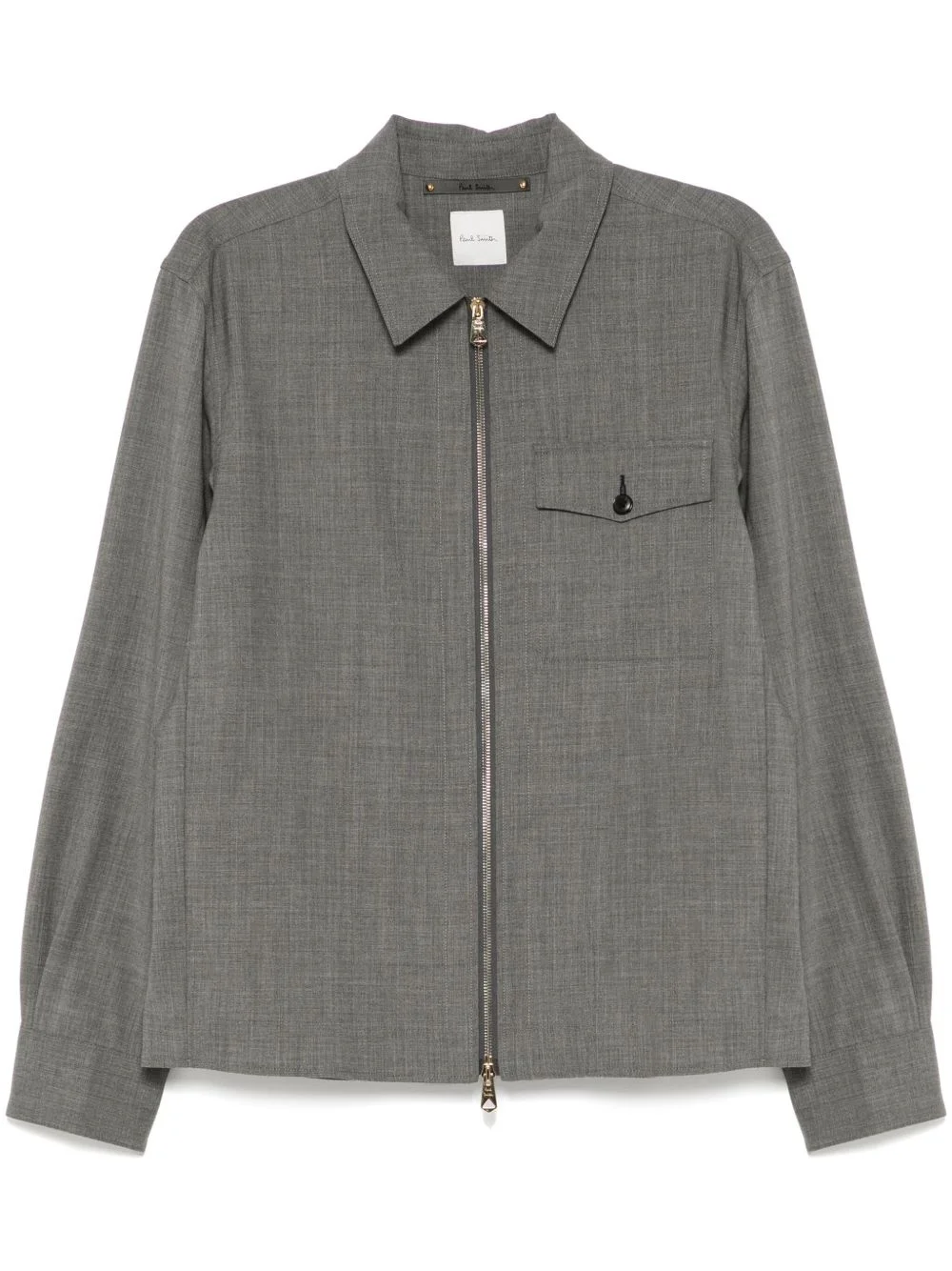 zip-up shirt jacket Highlights - Beluga grey - Front two-way zip fastening - Button-fastening chest pocket - Buttoned cuffs Imported Composition Wool 98%, Elastane 2%