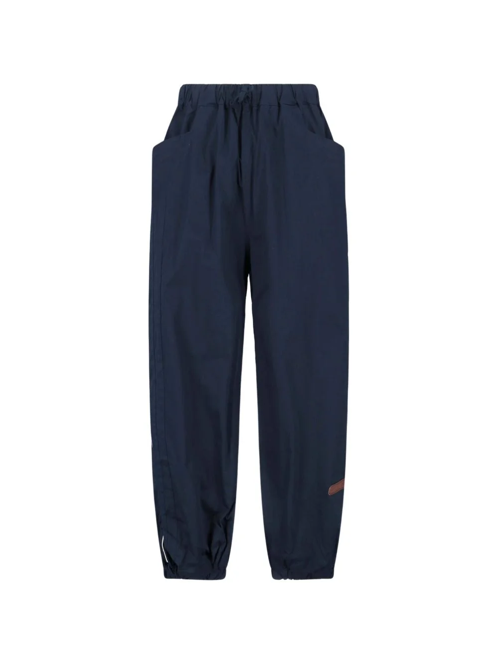 Carlo drawstring-fastening track pants Highlights - Blue - Drawstring fastening - Pockets - Gathered ankles - Leather detail - Side stripe Made in Italy Composition Cotton 98%, Elastane 2% Washing instructions Read Manufacturer Guidelines