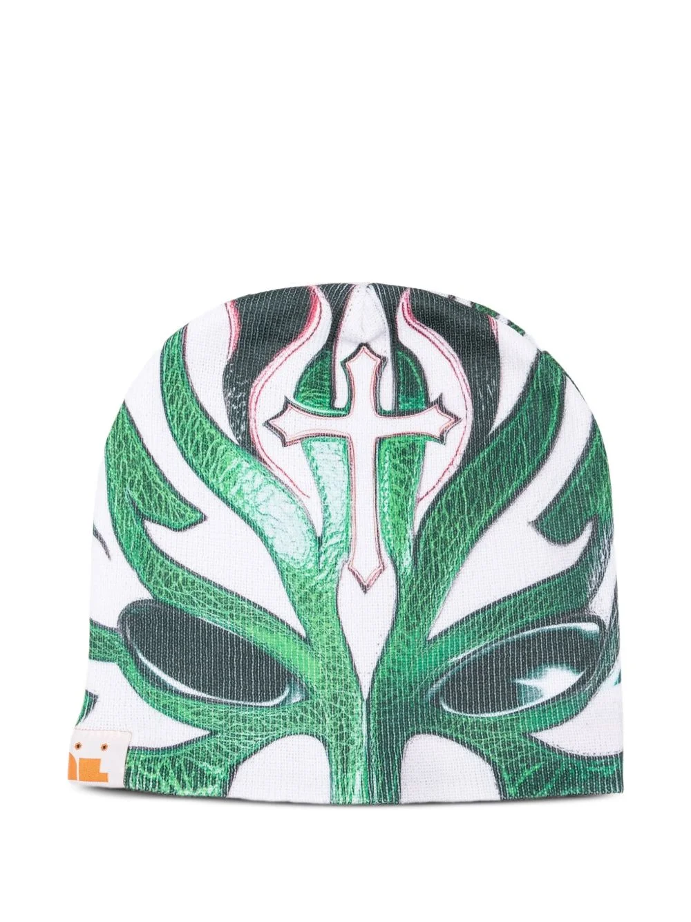 cross-print beanie Highlights - Green - Cross motif - Ribbed texture - Knit construction - All-over print Imported Composition Acrylic 100% Washing instructions Hand Wash