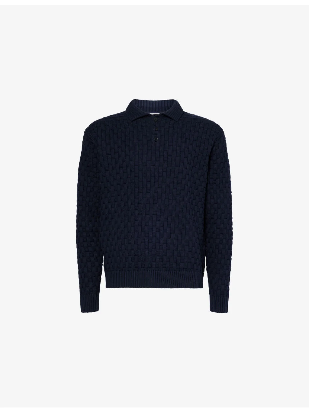 PRODUCT DETAILS - Percival knitted jumper - 100% cotton - Button fastening at front - Stand collar, button placket at front, long sleeves, all-over basket weave textured, ribbed trims - Machine wash at 30°C - Model is 6ft 2in/1.88m and wears a size medium - Midweight, slight stretch Ref: R04550137