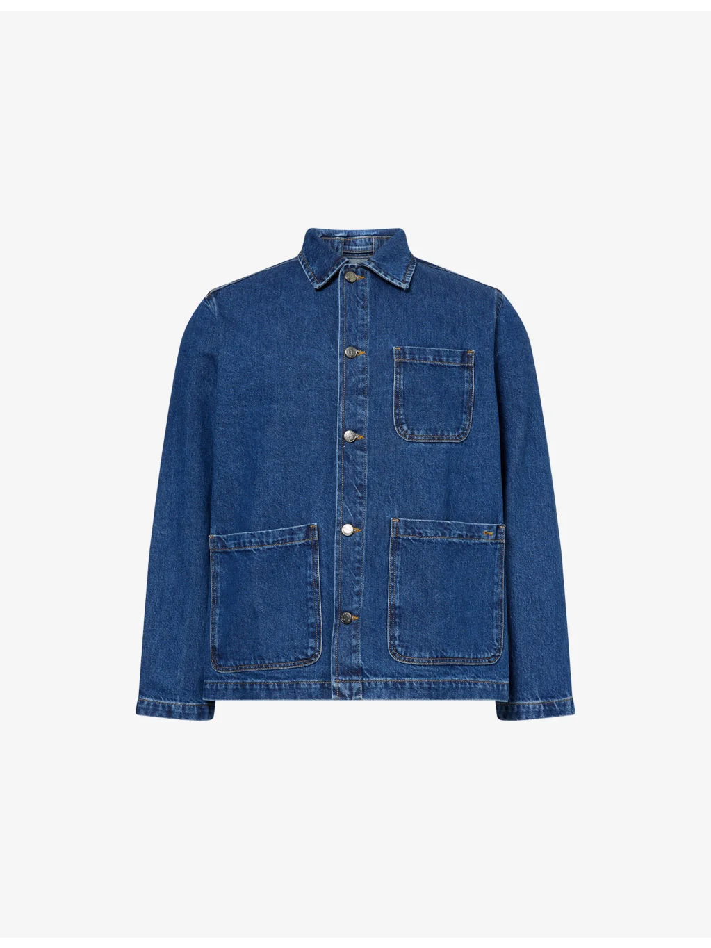 PRODUCT DETAILS - Percival denim jacket - 100% cotton - Button fastening at front - Pointed collar, long sleeves, three patch pockets at front, all-over contrast topstitch, straight hem - Machine wash at 30°C - Size medium: length 29.5in / 75cm, chest 45.6in / 116cm - Model is 6ft 2in/1.88m and wears a size medium - Midweight, non-stretch Ref: R04550147