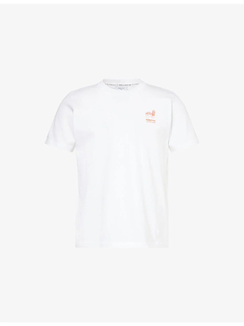 PRODUCT DETAILS - Percival cotton-jersey T-shirt - 100% cotton - Relaxed fit, crew neck, short sleeves, graphic print at front and back - Machine wash cold - Made in Portugal - Model is 6ft 2in/1.88m and wears a size medium - Lightweight, slight stretch Ref: R04603327