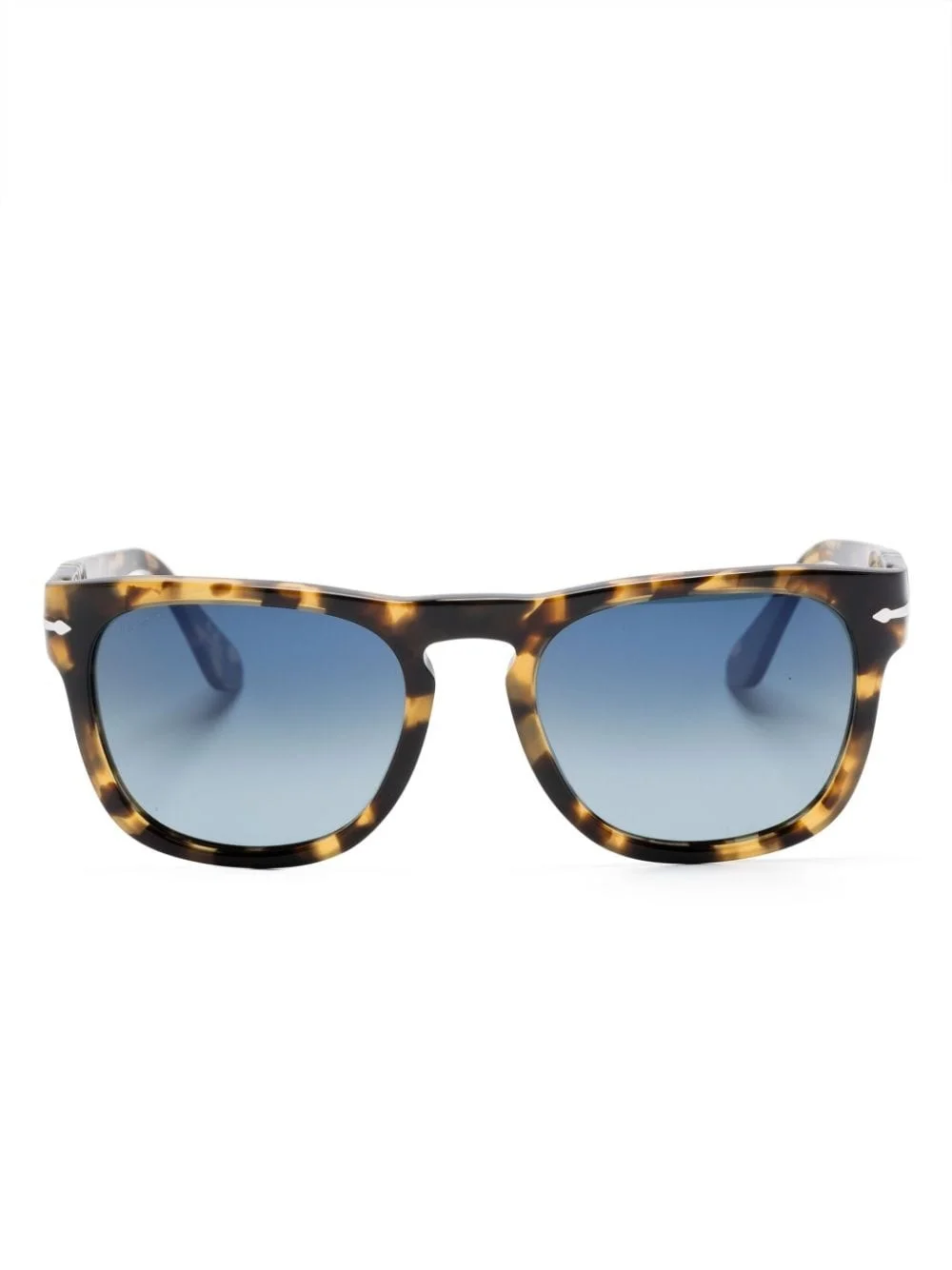 Elio square-frame sunglasses Highlights - Brown/beige - Acetate - Tortoiseshell effect - Square frame - Blue tinted lenses - Logo plaque at the arm - Straight arms and curved tips - These glasses come with a protective case. Made in Italy Composition Acetate 100% SIZE & FIT Measurement WIDTH 5.31 in(13.5 cm) Lens Diameter 2 in(5.1 cm) Bridge Width 0.78 in(2 cm) Arm Length 5.51 in(14 cm)