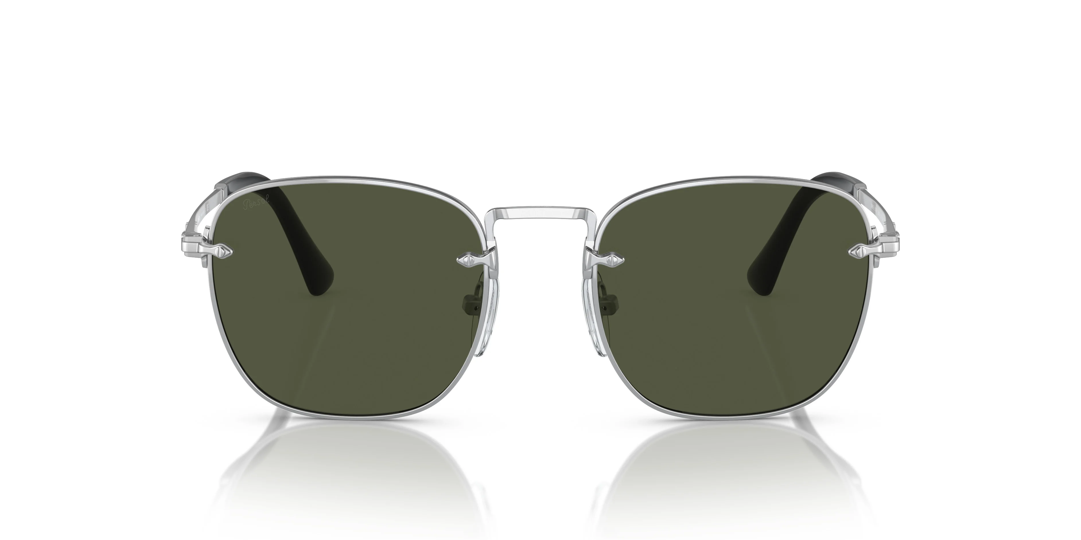 Simple yet iconic embossed arrows travel from the temple tips to the hinge on this soft square style featuring cool earthy toned colourways with two polar lens options. MODEL CODE: PO2490S 518/31 54-20 FRONT COLOR: Silver LENS COLOR: Green LENS MATERIAL: Crystal FRAME MATERIAL: Steel FIT: Narrow Fitting BRIDGE CHOICE & NOSEPAD: Adjustable Nosepads MADE IN: Italy
