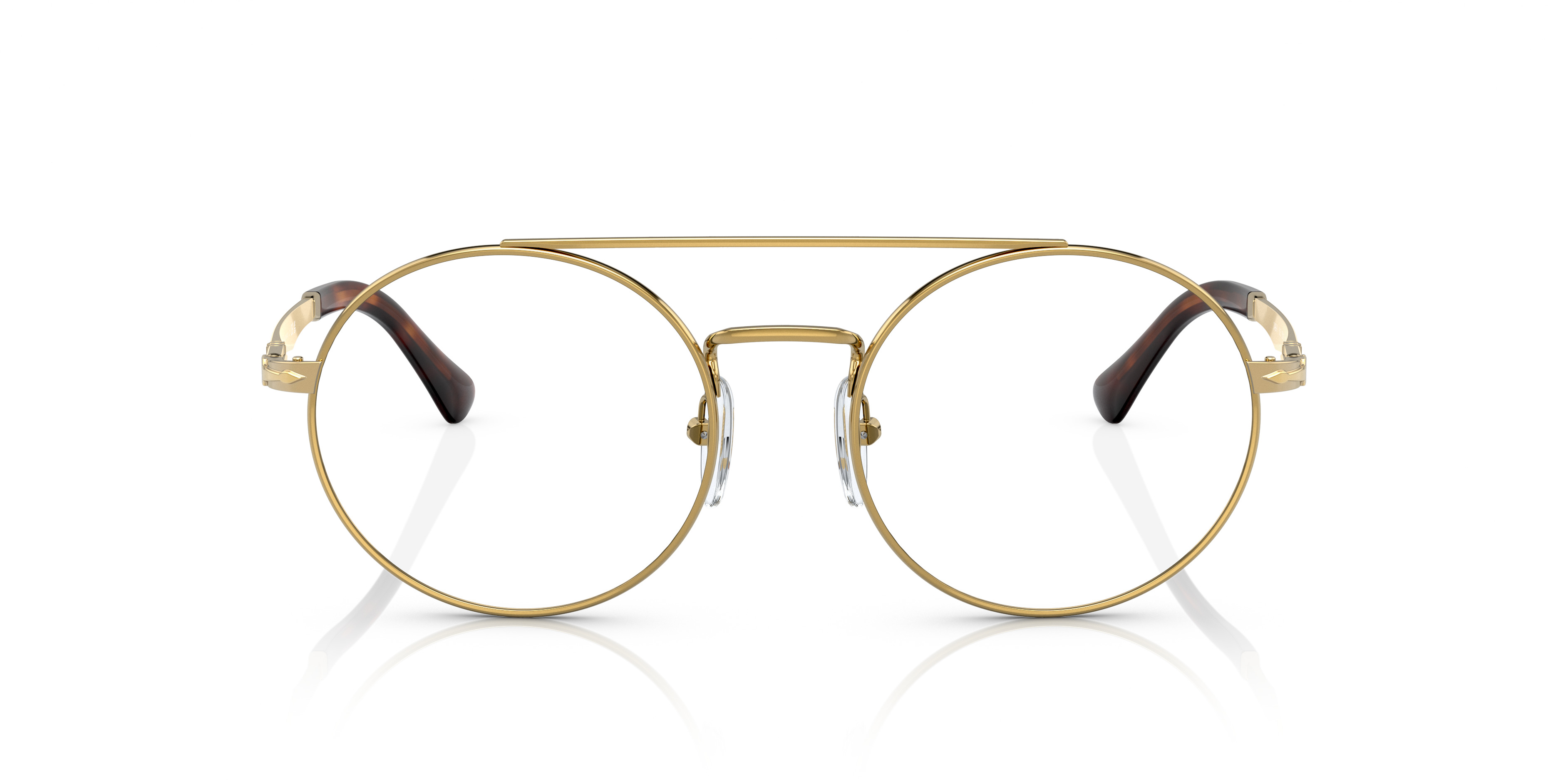 This optical style represents the evolution of a classic shape into a modern optical look with refined metal profiles and instantly recognisable Persol silver arrows on the temples. MODEL CODE: PO2496V 515 48-18 FRONT COLOR: Gold LENS COLOR: Clear LENS MATERIAL: Plastic FRAME MATERIAL: Metal FIT: Narrow Fitting BRIDGE CHOICE & NOSEPAD: Adjustable Nosepads MADE IN: Italy