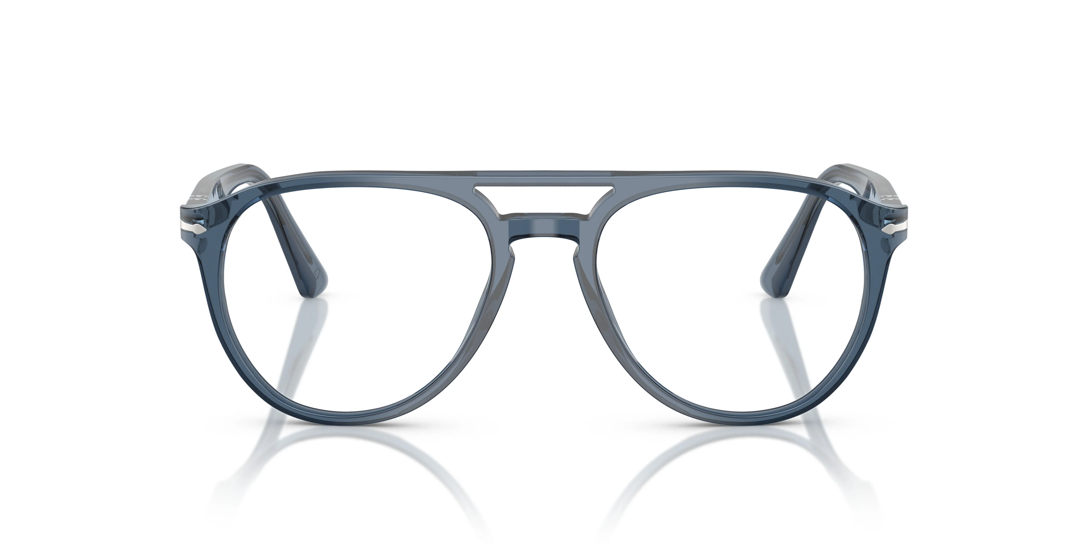 This pilot optical shape features slim profiles and iconic details with a unique double bridge in acetate for a daring yet elegant identity. MODEL CODE: PO3160V 1197 52-18 FRONT COLOR: Transparent Denim Blue LENS COLOR: Demo Lens FRAME MATERIAL: Acetate FIT: Regular Fitting BRIDGE CHOICE & NOSEPAD: High Bridge Fit MADE IN: Italy