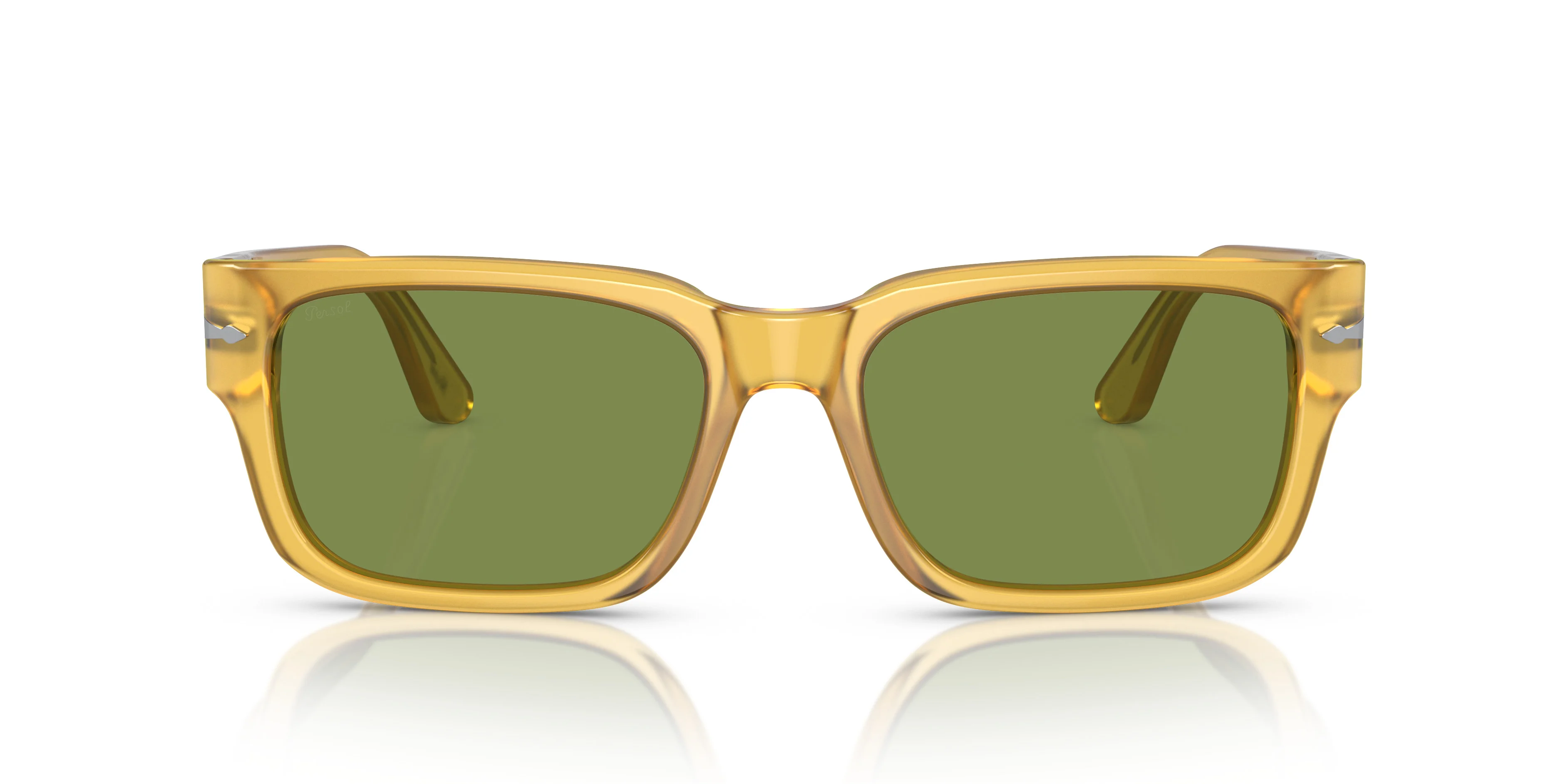 Narrow rectangular acetate sun style with premium Barberini lenses and medium-sized temples. Available in the iconic Persol colors including Terra di Siena and Miele with Silver arrows and Meflecto. MODEL CODE: PO3315S 204/4E 58-19 FRONT COLOR: Miele LENS COLOR: Green LENS MATERIAL: Crystal FRAME MATERIAL: Acetate FIT: Regular Fitting BRIDGE CHOICE & NOSEPAD: High Bridge Fit MADE IN: Italy