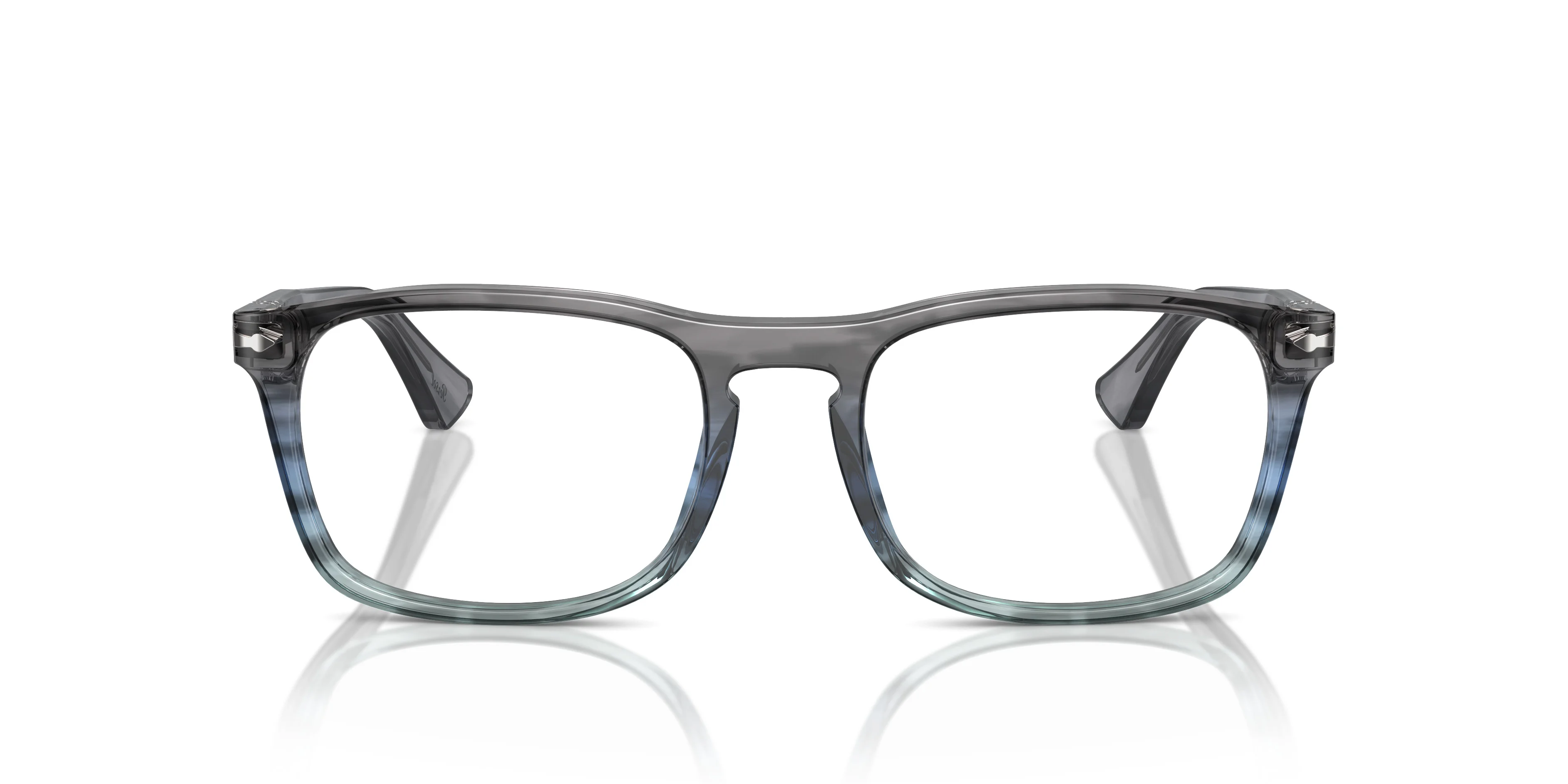 MODEL CODE: PO3344V 1205 52-19 FRONT COLOR: Striped Grey Gradient Blue LENS COLOR: Clear FRAME MATERIAL: Acetate BRIDGE CHOICE & NOSEPAD: High Bridge Fit MADE IN: Italy