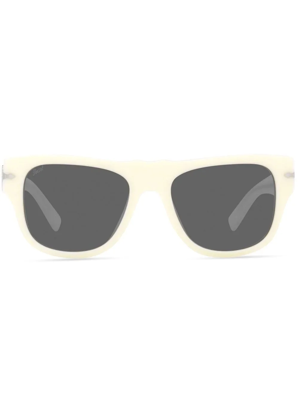 square-frame sunglasses ivory white acetate square frame tinted lenses wide nose bridge logo print at the arm straight arms curved tips These glasses come with a protective case. Made in United States Composition Acetate 100%