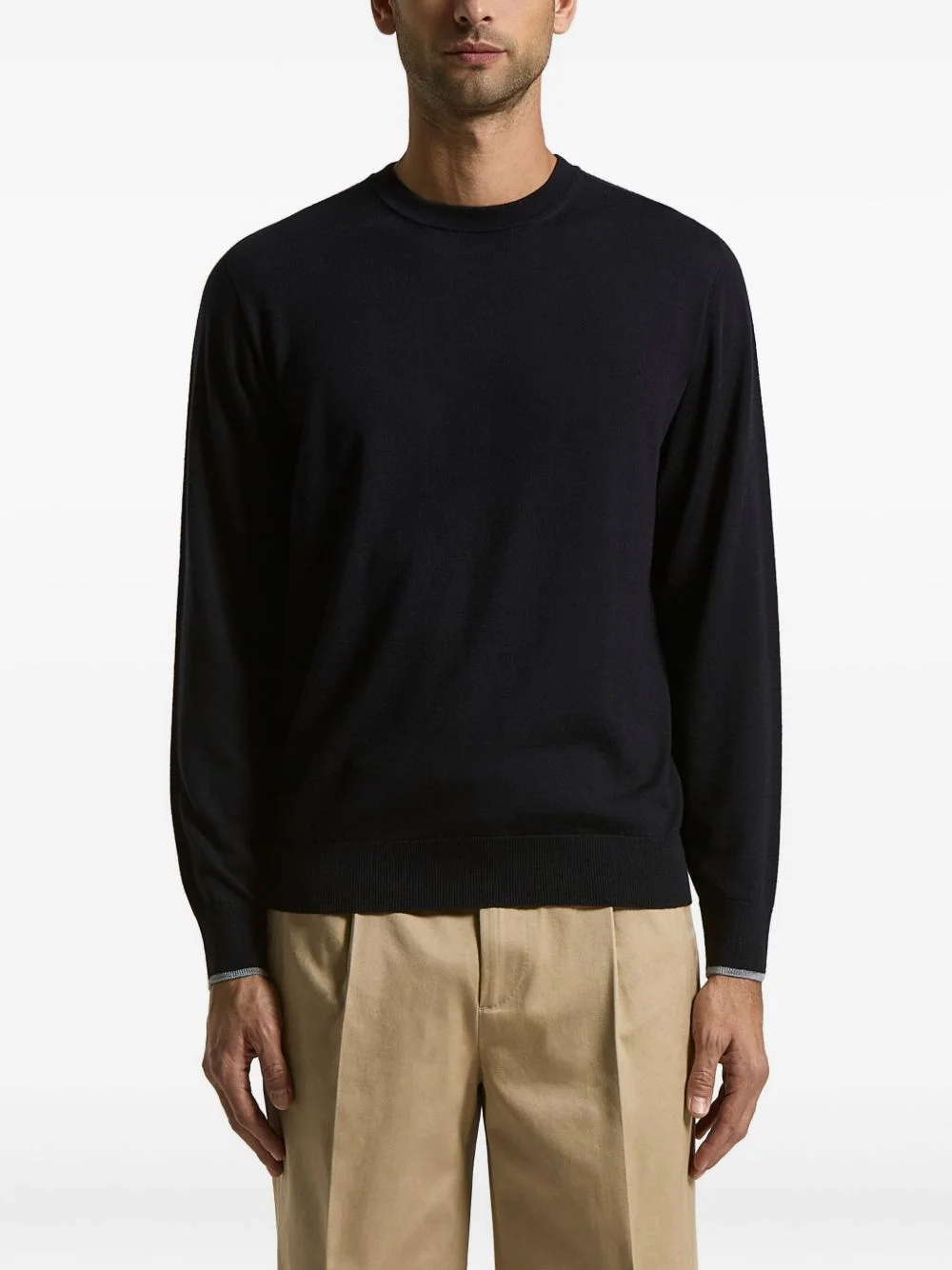 crew-neck sweater Highlights - Blue - Ribbed hem - Ribbed cuffs - Crew neck - Long sleeves - Ribbed knit Made in Italy Composition Virgin Wool 100% Washing instructions Read Manufacturer Guidelines