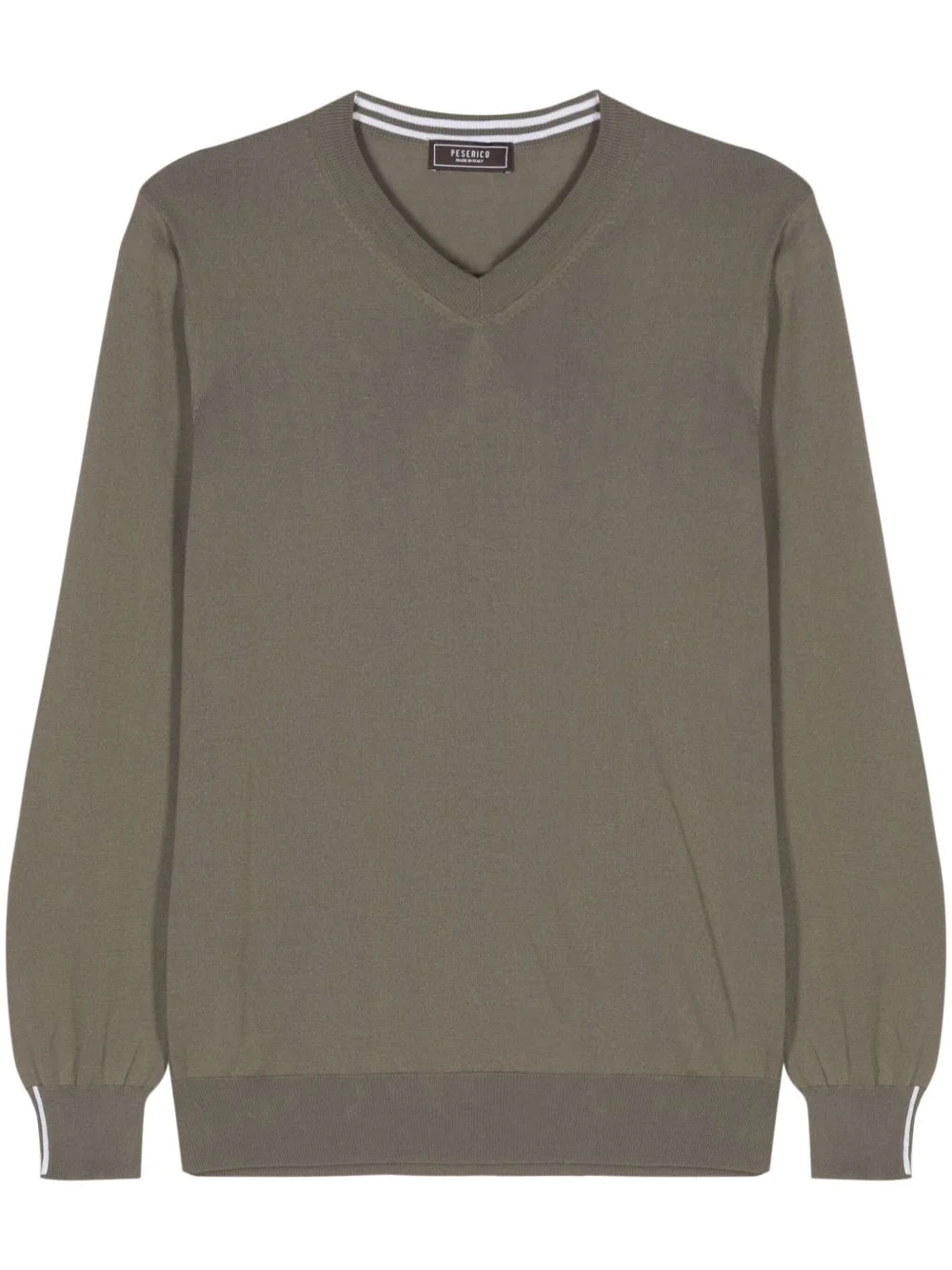 fine-ribbed cotton jumper Highlights - Olive green - Cotton - Fine ribbed - Side stripe detailing at the cuffs - V-neck - Long sleeves - Straight hem - Unlined Made in Italy Composition Cotton 100% Washing instructions Hand Wash