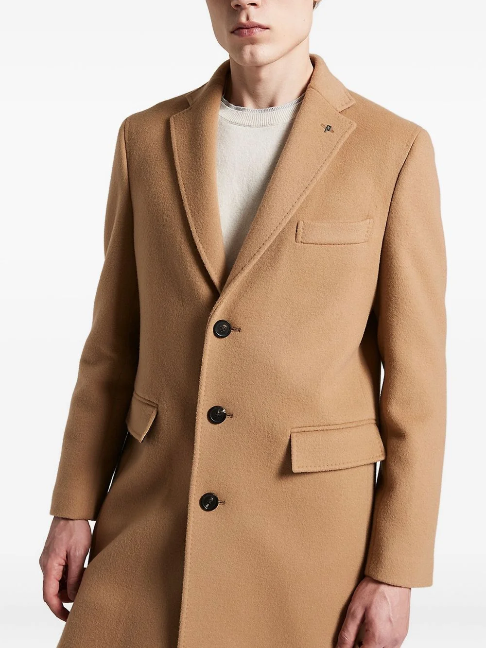 single-breasted coat Highlights - Camel - Notched lapels - Four-button cuffs fastening - Flap pockets - Straight hem - Long sleeves Made in Italy Composition Fabric 100% Washing instructions Read Manufacturer Guidelines