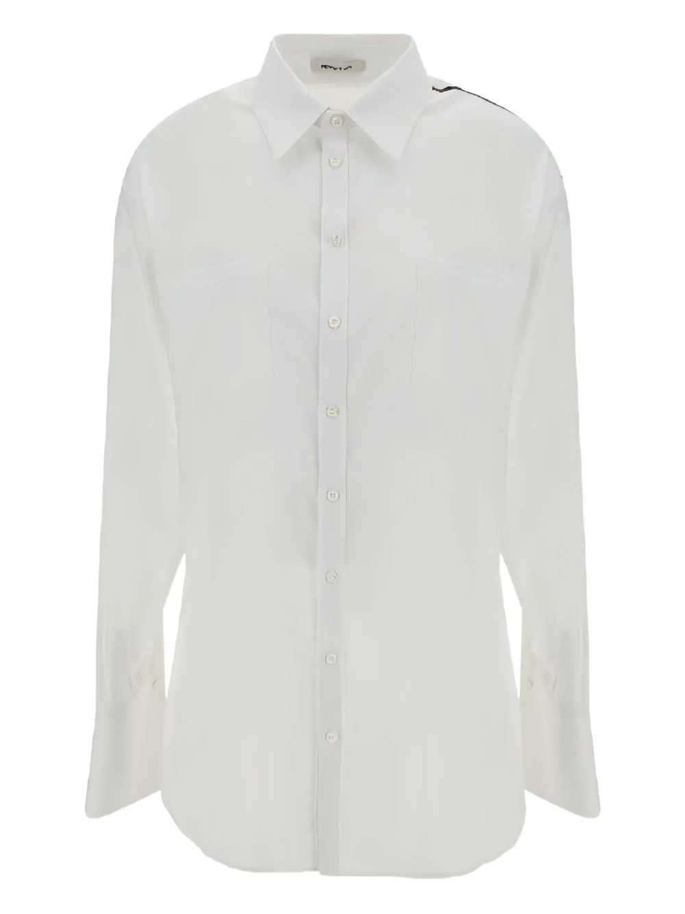 stripe-detail shirt Highlights - White - Long sleeves - Button fastening - Two patch pockets - Black stripe detail - Curved hemline Made in Italy Composition Cotton 70%, Polyamide 30% Washing instructions Read Manufacturer Guidelines