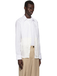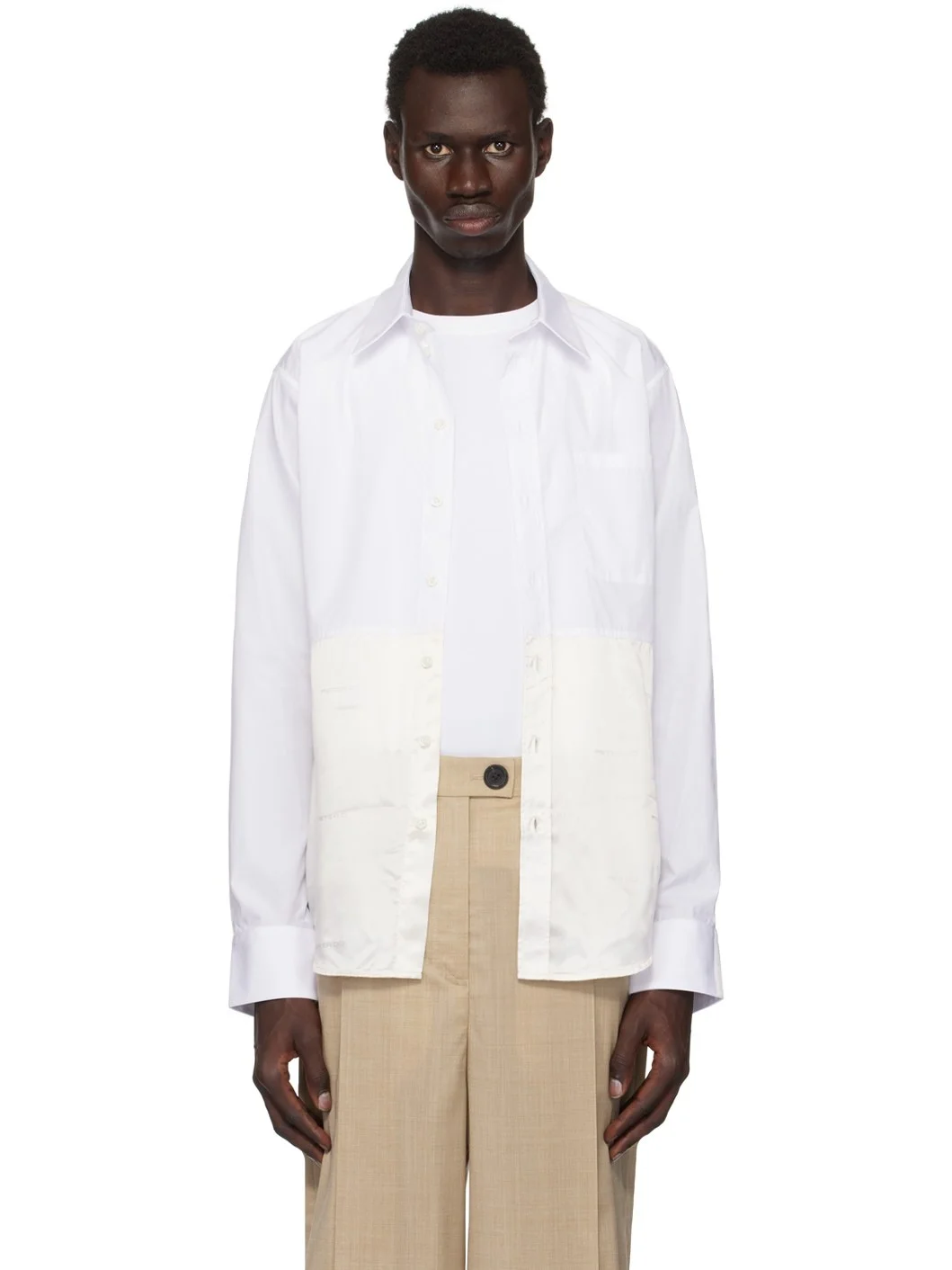 Cotton poplin and viscose satin shirt. · Paneled construction · Spread collar · Button closure · Shirttail hem · Single-button barrel cuffs · Pleats at back collar Supplier color: White/Ivory Body 1: 100% cotton. Body 2: 100% viscose. Made in United States 242462M192001