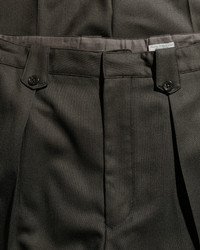 Hopsack woven with twisted wool yarn - this my friends is the fabric to watch. It results in a durable, wrinkle-resistant, and breathable fabric with a distinctive, crisp texture. This weave is a modified plain weave where two warp threads are followed by two weft threads, creating a slightly open, textured appearance.The high-twist wool yarn contributes to the fabric's strength and wrinkle resistance. And that my friends is what we call a perfect fabric. DETAILS - Hopsack woven with twisted wool yarn - Pleated front - Front slash pockets & rear double welt pocket - Button belt loops - 100% wool - Made in Japan - Model is 6’2” (189cm), 160lbs (73kg) and wearing 4