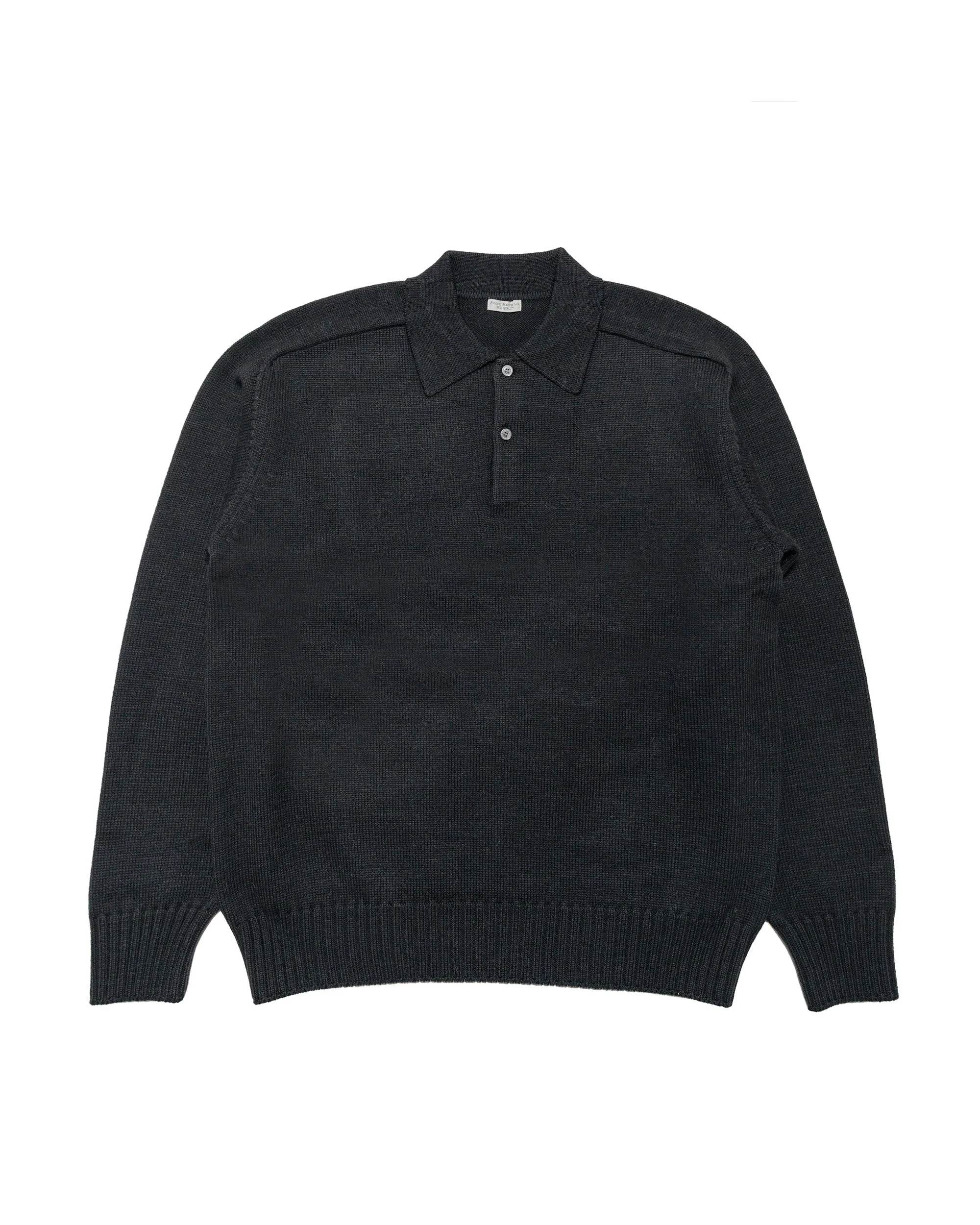 Wool alpaca polo. This is special. Just look at how TIGHT this knit is. You get comfort, warmth, and perfection all in one piece. And on top of that, there are two colours. All I want for... DETAILS - Wool alpaca yarn mix knit - Two button placket - Ribbed neck, cuffs & hem - 75% wool 25% alpaca - Made in Japan - Model is 6'1" (186cm), 160lbs (73kg) and wearing size 3