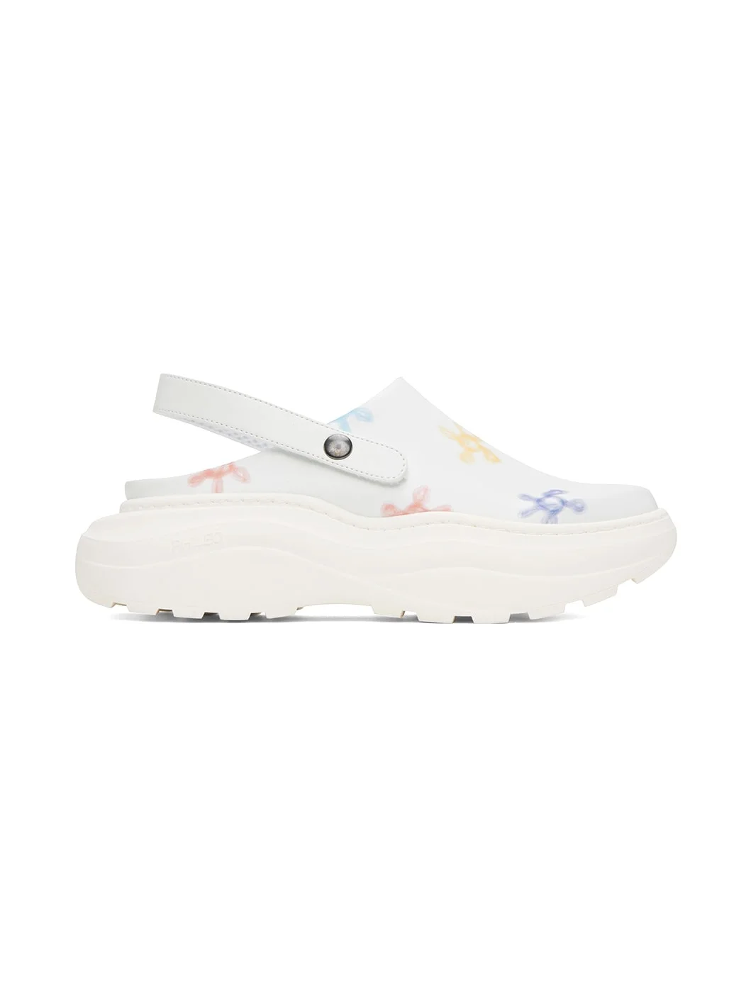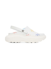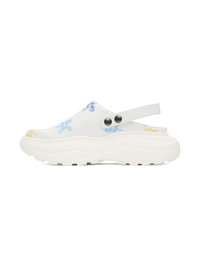 Buffed Apple Skin® faux-leather slip-on loafers in white. Floral pattern printed throughout. · Adjustable and detachable slingback strap · Mesh lining · Logos embossed at rubber platform midsole · Treaded rubber outsole · Platform: H2.25 in Supplier color: Multiflower white Upper: synthetic. Sole: rubber. Made in Portugal 231931M225007
